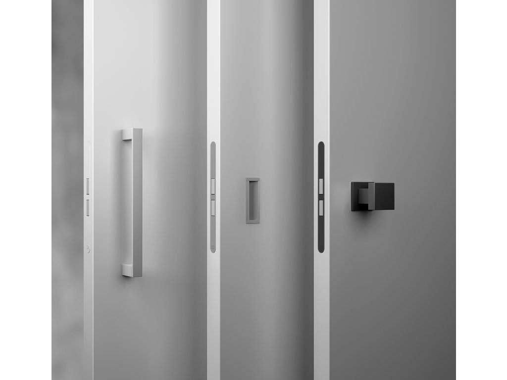 Keď sú dvere otvorené, magnety sa stiahnu a zostanú v jednej rovine s hranou dverného krídla - takže nič z dverí nevyčnieva. Zámok sa pýši 100% minimalistickým dizajnom vďaka elegantnému prekrytiu plastovými krytkami v 3 farbách.