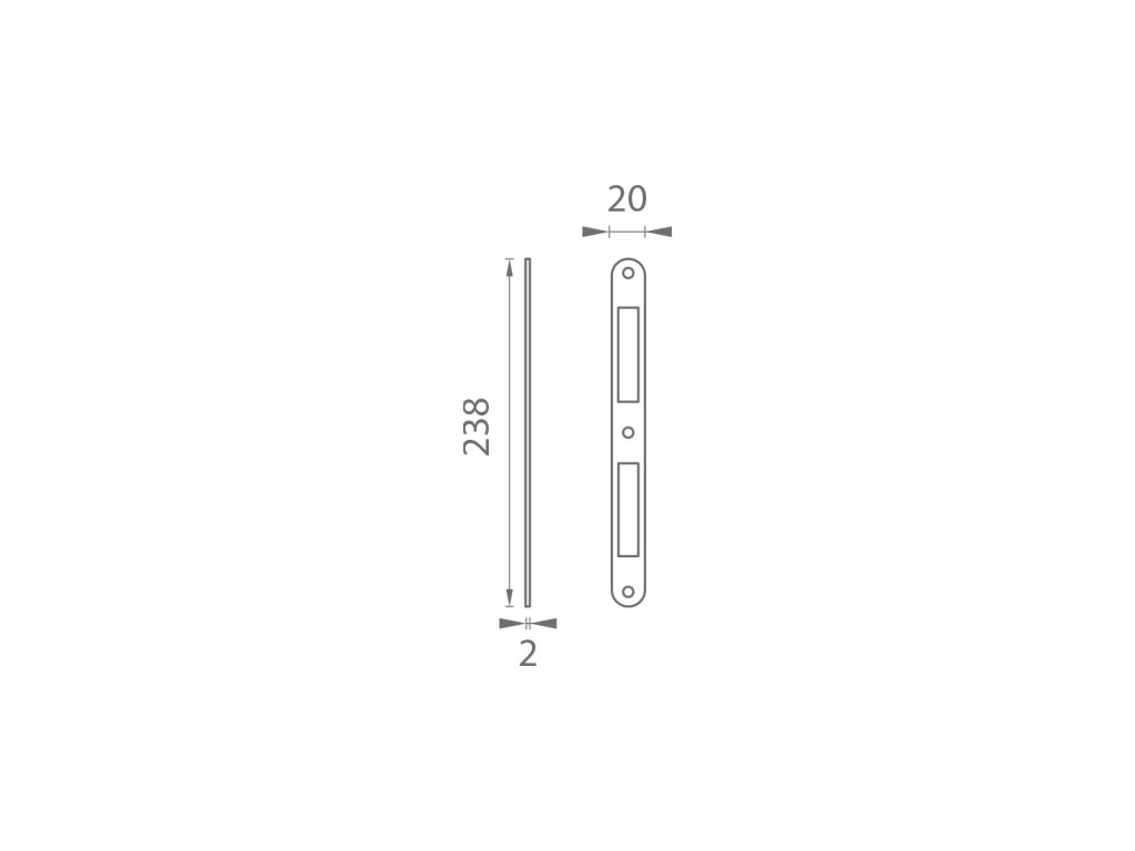 Protiplech rovný oblý k zámku F18 univerzálny má rozmery 20 mm x 238 mm a hrúbku 2 mm.Dodatočné parametre