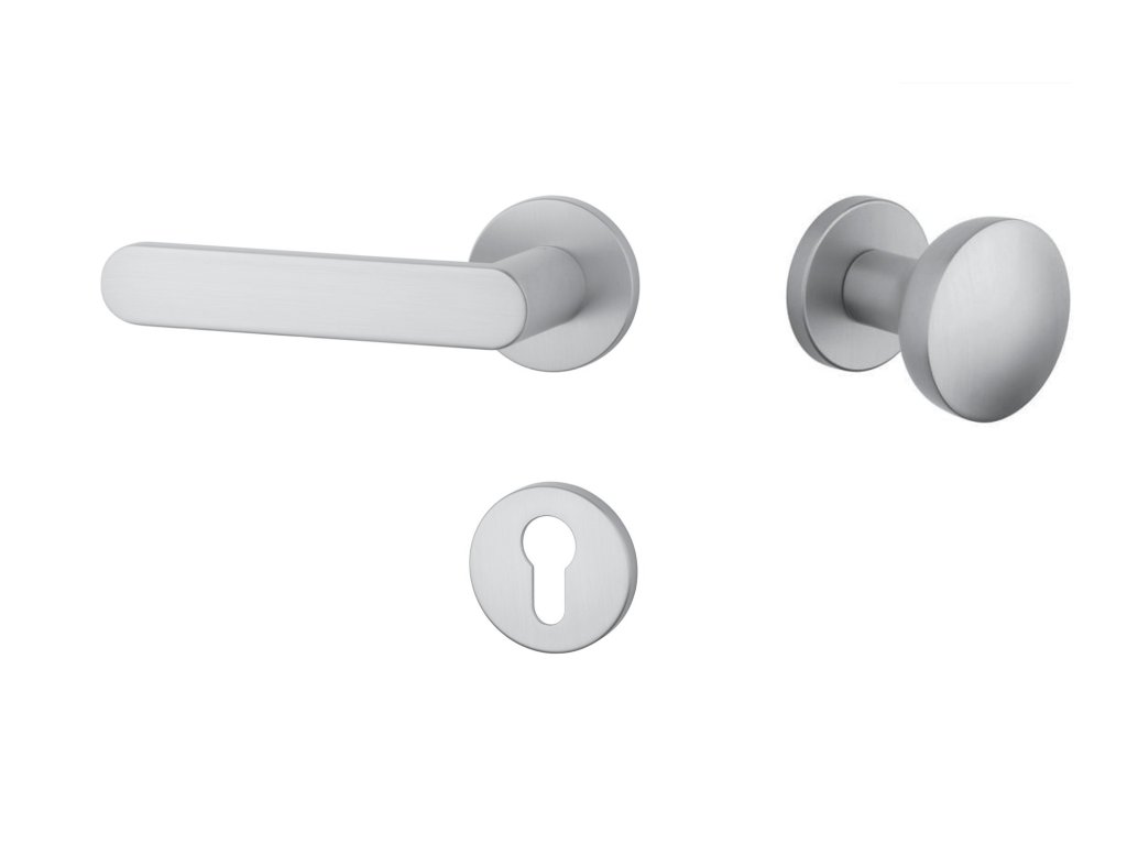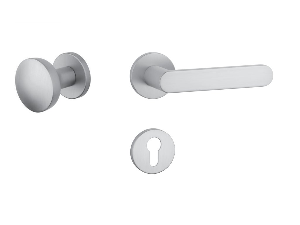 Rozetová kľučka na interiérové dvere s okrúhlou rozetou je vyrobená z materiálov vysokej kvality - zamak a je povrchovo upravená. Rozeta má priemer 52 mm a hrúbku len 7 mm. Minimalistický dizajn rozety s vysokou stabilitou kľučky na dverách pôsobí jemne, a tým ponecháva priestor pre vyniknutie dizajnu samotnej kľučky.
