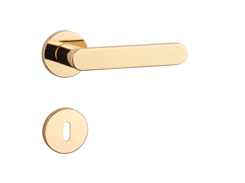 Rozetová kľučka na interiérové dvere s okrúhlou rozetou je vyrobená z materiálov vysokej kvality - zamak a je povrchovo upravená. Rozeta má priemer 52 mm a hrúbku len 7 mm. Minimalistický dizajn rozety s vysokou stabilitou kľučky na dverách pôsobí jemne, a tým ponecháva priestor pre vyniknutie dizajnu samotnej kľučky.