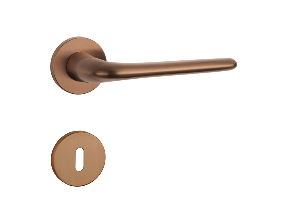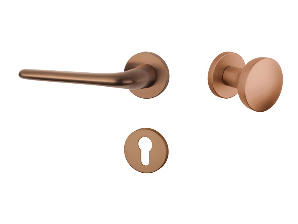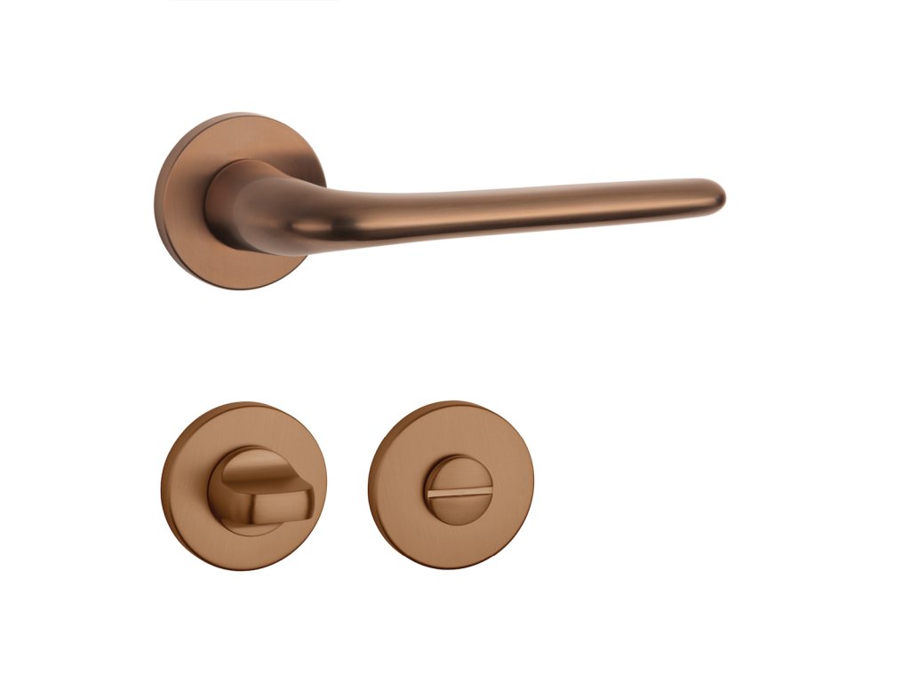 Rozetová kľučka na interiérové dvere s okrúhlou rozetou je vyrobená z materiálov vysokej kvality - zamak a je povrchovo upravená. Rozeta má priemer 52 mm a hrúbku len 7 mm. Minimalistický dizajn rozety s vysokou stabilitou kľučky na dverách pôsobí jemne, a tým ponecháva priestor pre vyniknutie dizajnu samotnej kľučky.