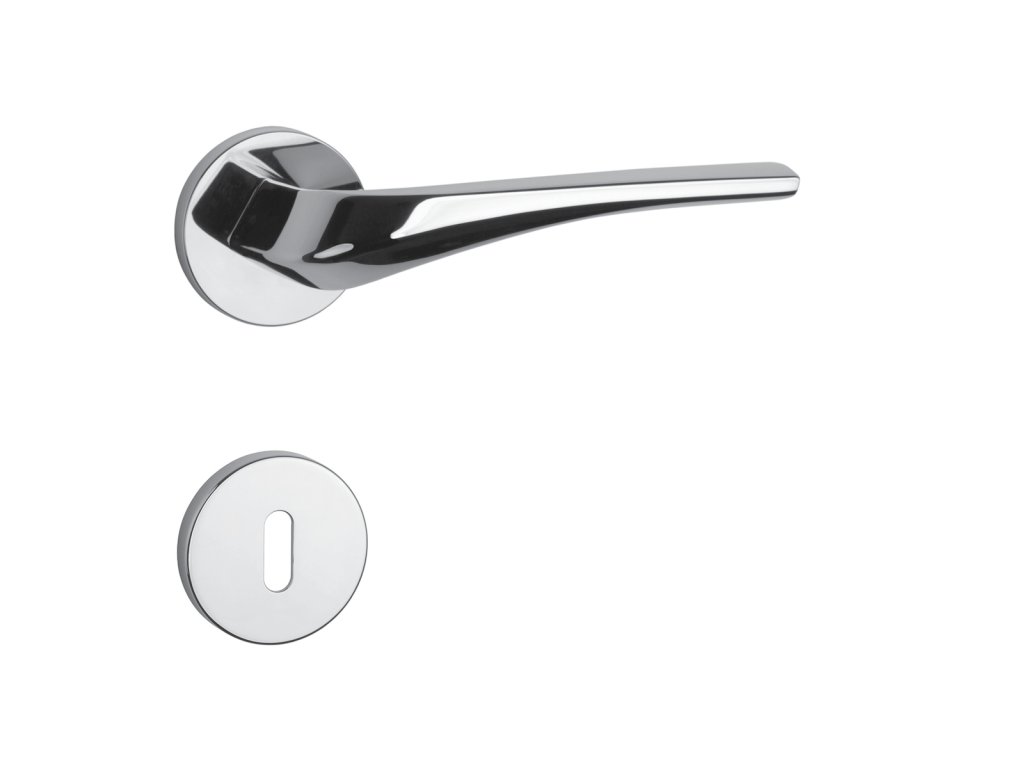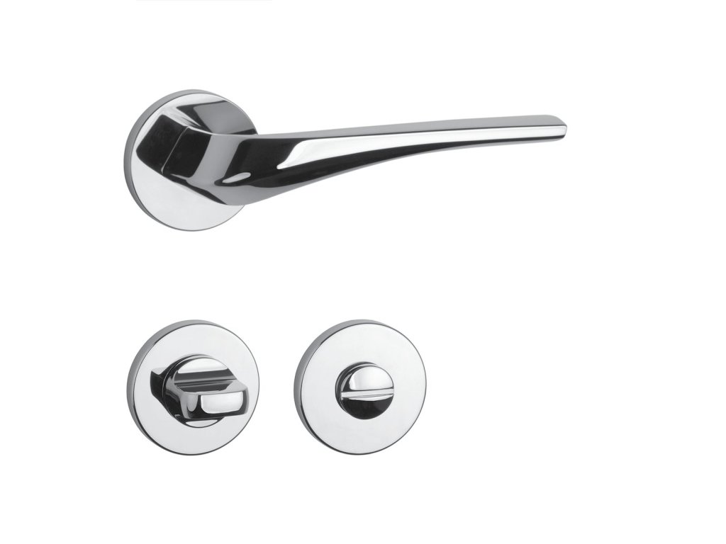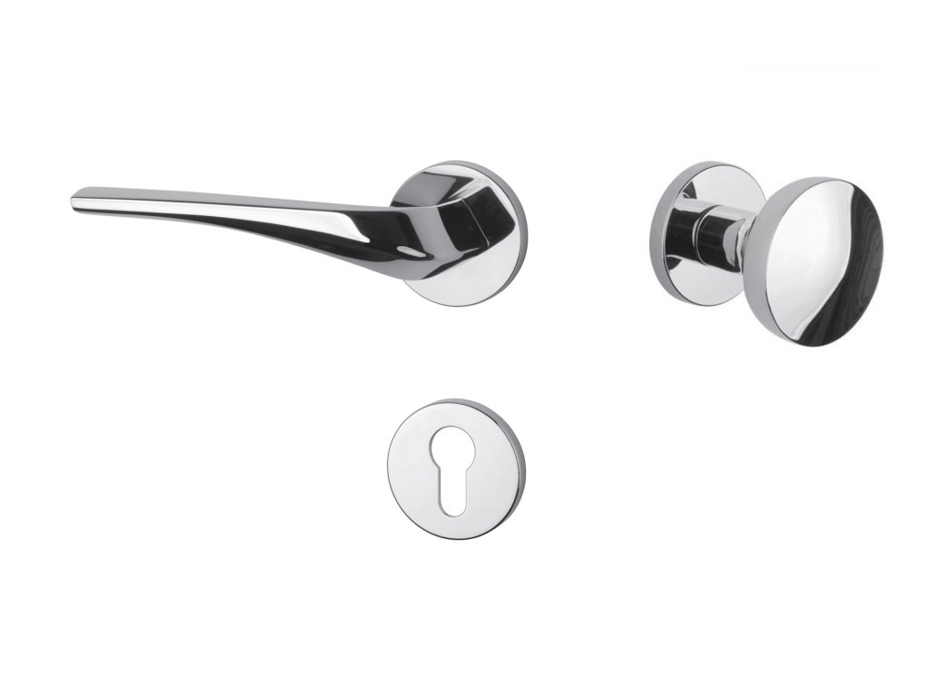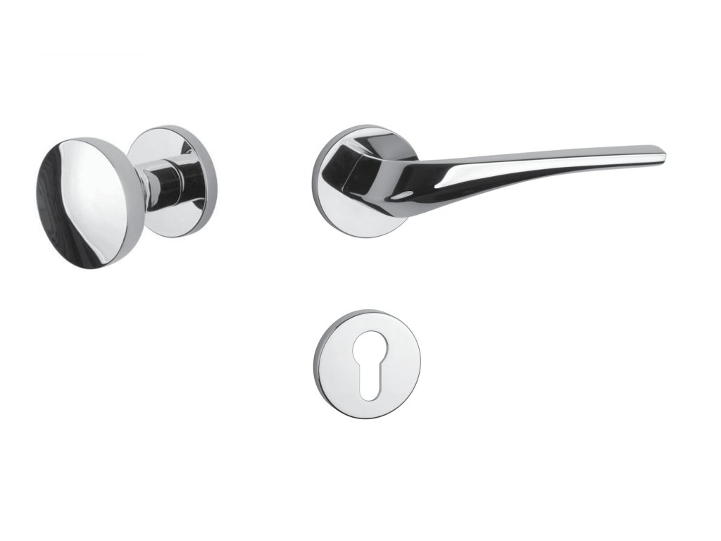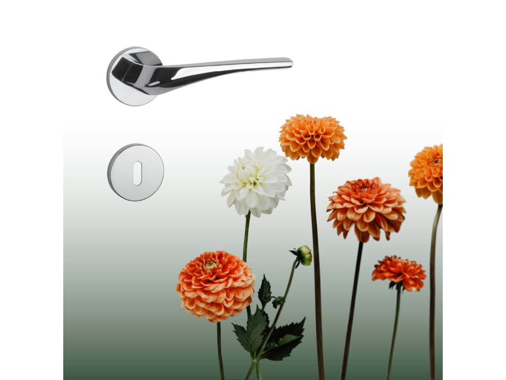 Rozetová kľučka na interiérové dvere s okrúhlou rozetou je vyrobená z materiálov vysokej kvality - zamak a je povrchovo upravená. Rozeta má priemer 52 mm a hrúbku len 7 mm. Minimalistický dizajn rozety s vysokou stabilitou kľučky na dverách pôsobí jemne, a tým ponecháva priestor pre vyniknutie dizajnu samotnej kľučky.