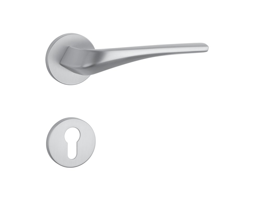 Rozetová kľučka na interiérové dvere s okrúhlou rozetou je vyrobená z materiálov vysokej kvality - zamak a je povrchovo upravená. Rozeta má priemer 52 mm a hrúbku len 7 mm. Minimalistický dizajn rozety s vysokou stabilitou kľučky na dverách pôsobí jemne, a tým ponecháva priestor pre vyniknutie dizajnu samotnej kľučky.
