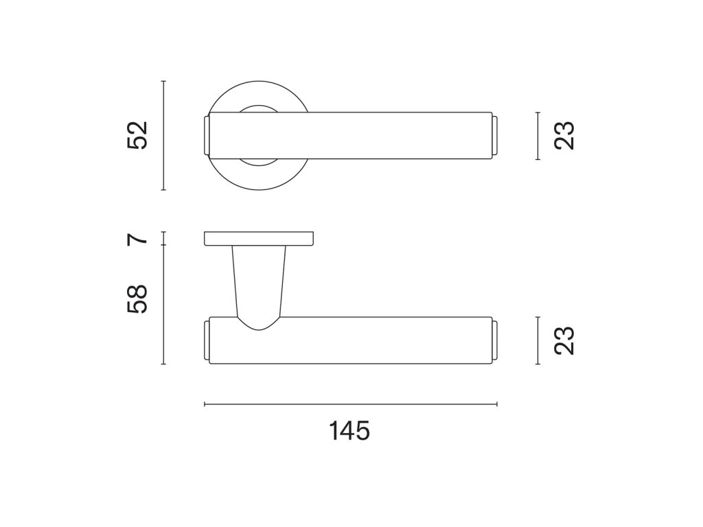 Rozetová kľučka na interiérové dvere s okrúhlou rozetou je vyrobená z materiálov vysokej kvality - zamak a je povrchovo upravená. Zaujímavým prvkom je čierna koža, ktorá obopína rukoväť kľučky. Rozeta má priemer 52 mm a hrúbku len 7 mm. Minimalistický dizajn rozety s vysokou stabilitou kľučky na dverách pôsobí jemne, a tým ponecháva priestor pre vyniknutie dizajnu samotnej kľučky.