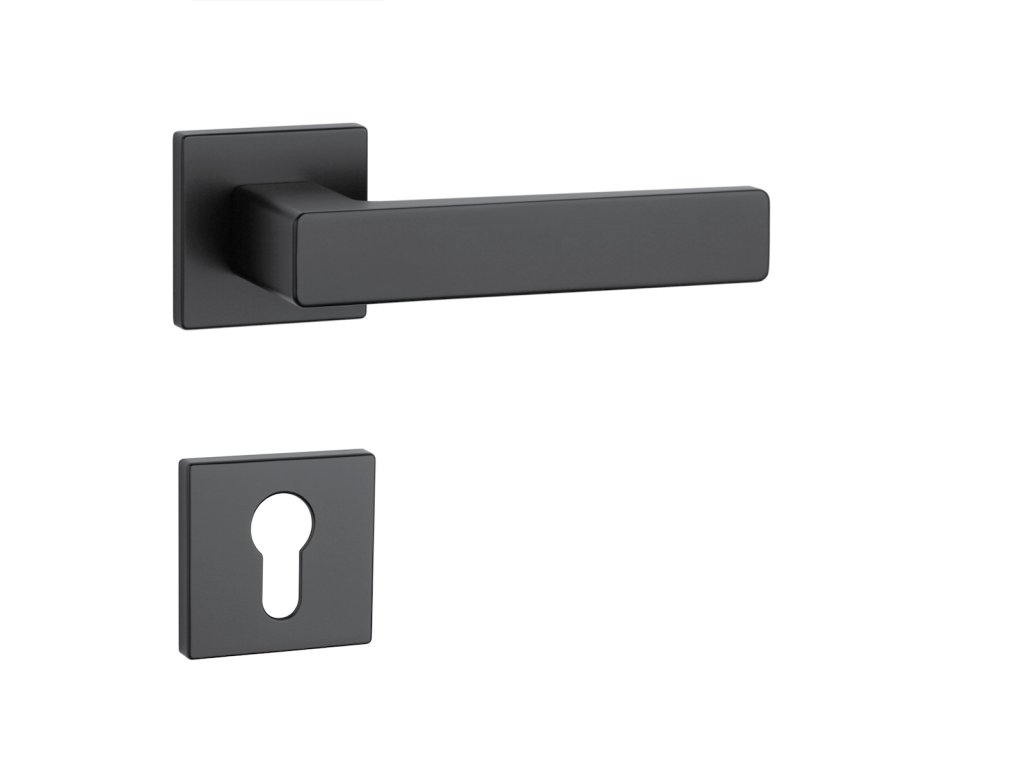 Rozetová kľučka na interiérové dvere s hranatou rozetou je vyrobená z materiálov vysokej kvality - zamak a je povrchovo upravená. Rozeta má rozmer 52x52 mm a hrúbku len 7 mm. Minimalistický dizajn rozety s vysokou stabilitou kľučky na dverách pôsobí jemne, a tým ponecháva priestor pre vyniknutie dizajnu samotnej kľučky.