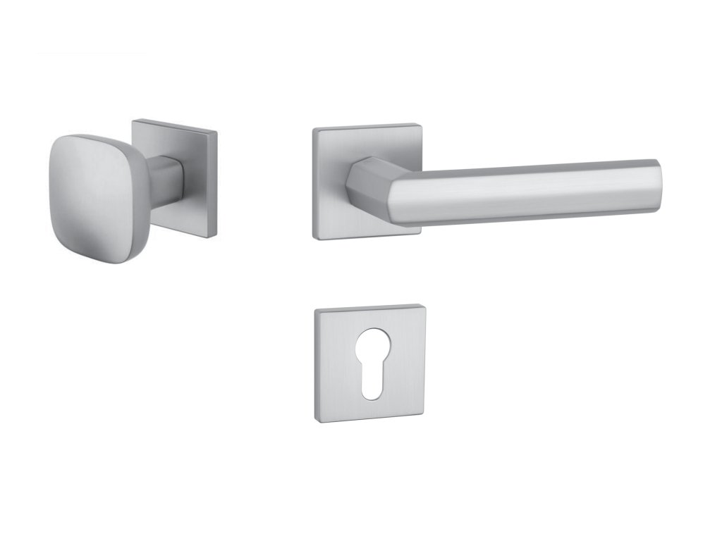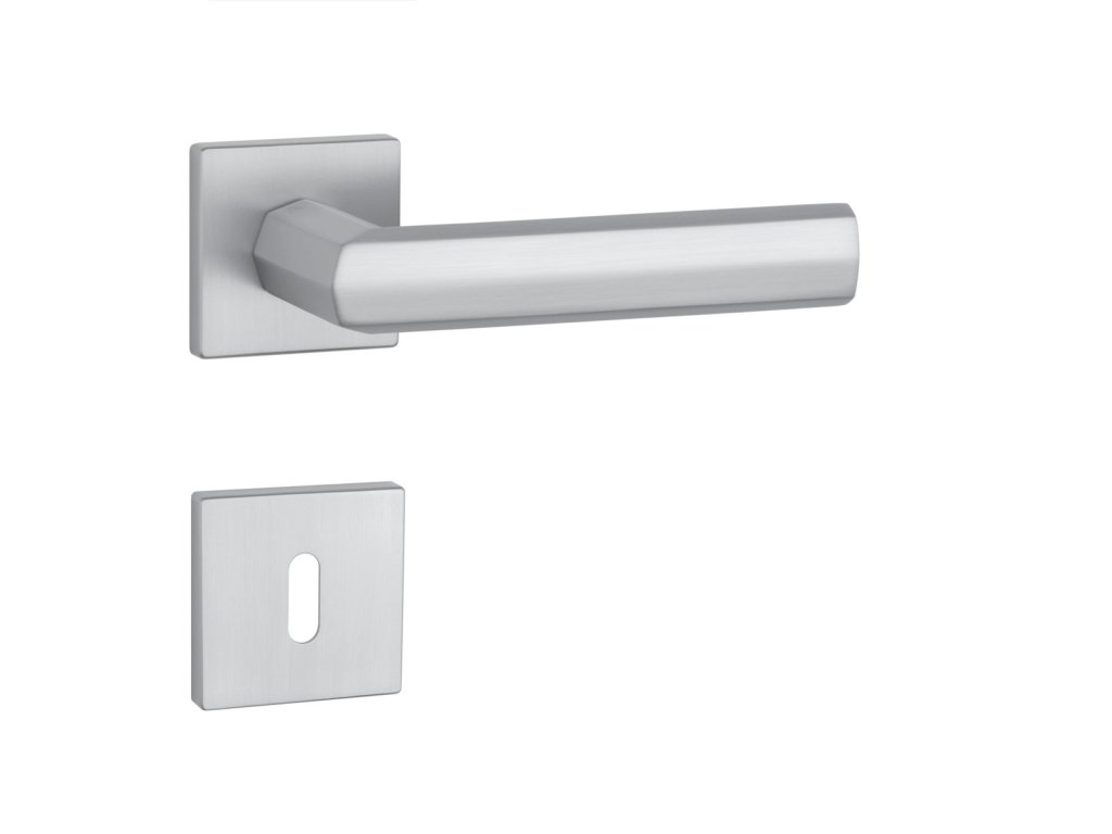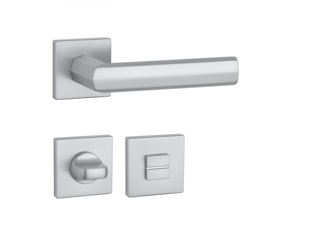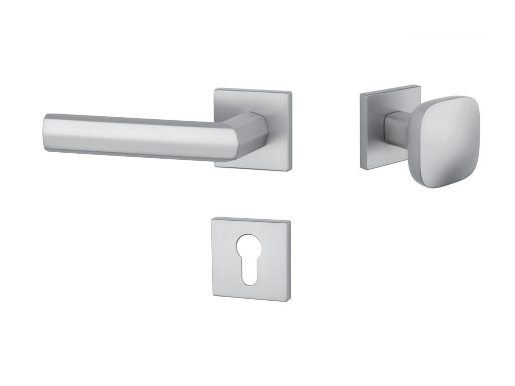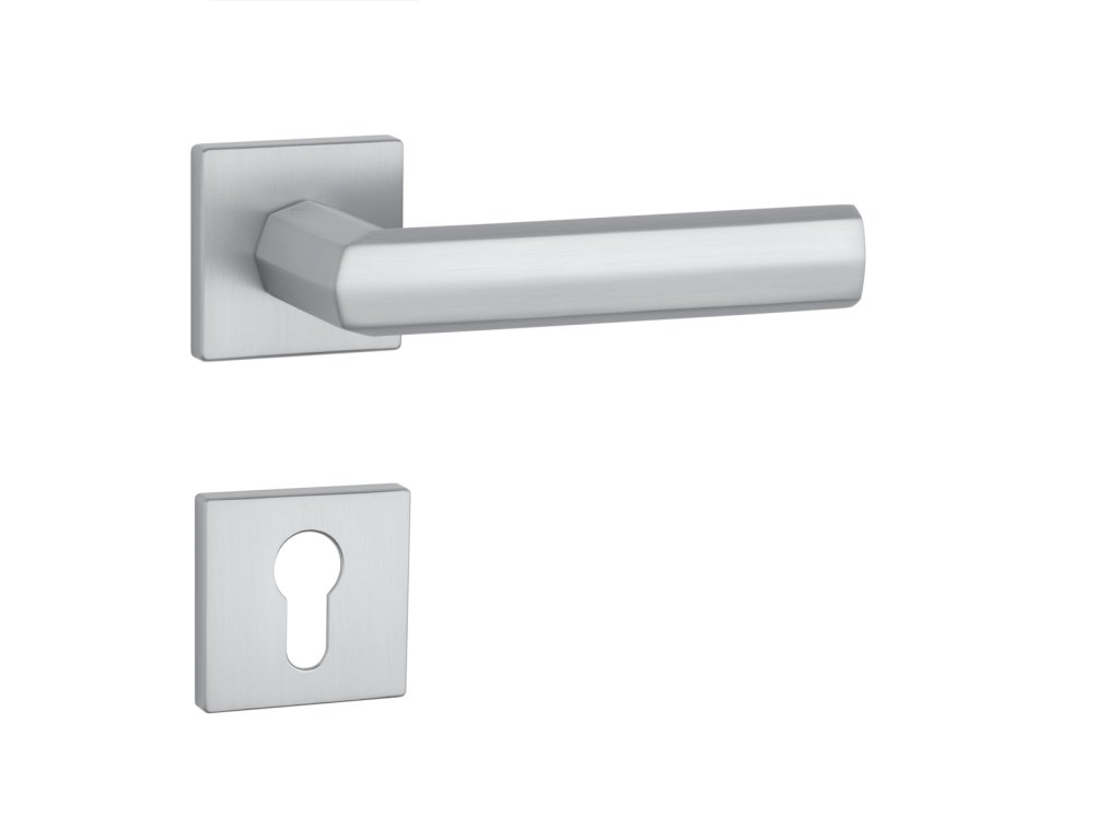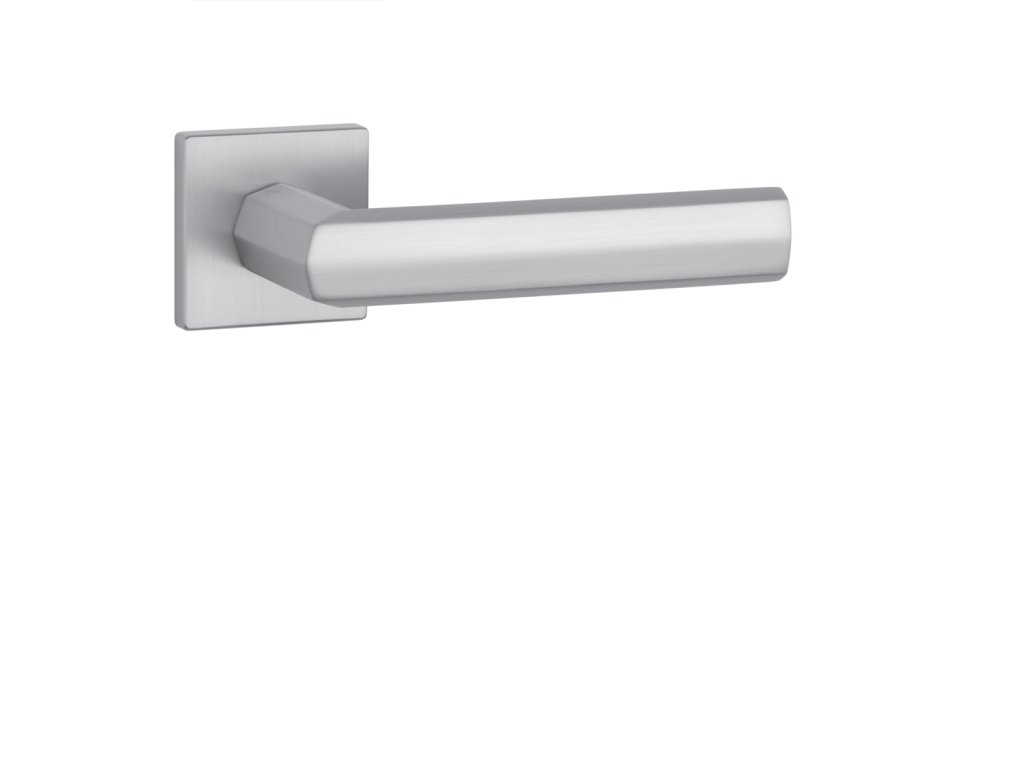 Rozetová kľučka na interiérové dvere s hranatou rozetou je vyrobená z materiálov vysokej kvality - zamak a je povrchovo upravená. Rozeta má rozmer 52x52 mm a hrúbku len 7 mm. Minimalistický dizajn rozety s vysokou stabilitou kľučky na dverách pôsobí jemne, a tým ponecháva priestor pre vyniknutie dizajnu samotnej kľučky.