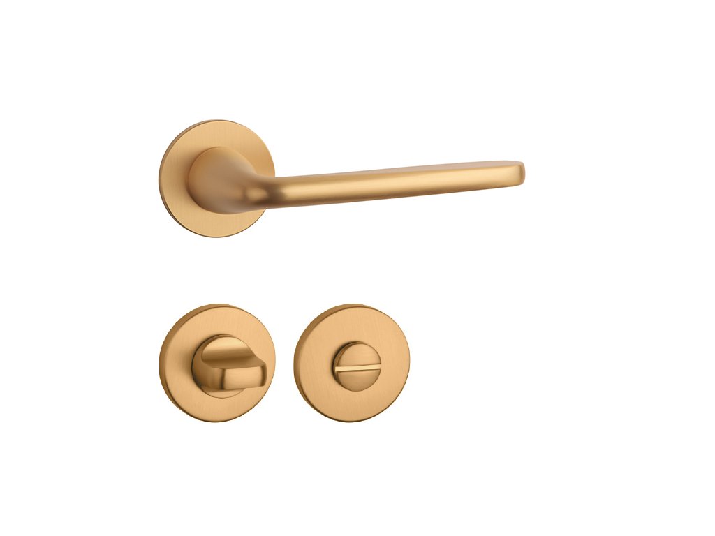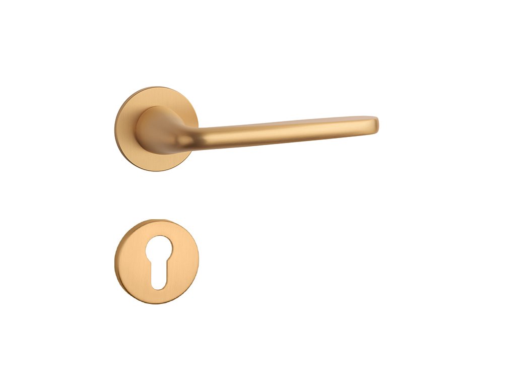 Rozetová kľučka na interiérové dvere s okrúhlou rozetou je vyrobená z materiálov vysokej kvality - zamak a je povrchovo upravená. Rozeta má priemer 52 mm a hrúbku len 5 mm. Minimalistický dizajn rozety s vysokou stabilitou kľučky na dverách pôsobí jemne, a tým ponecháva priestor pre vyniknutie dizajnu samotnej kľučky.