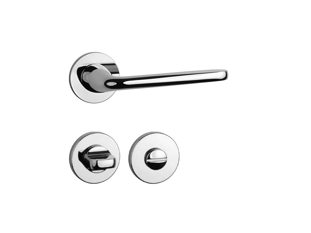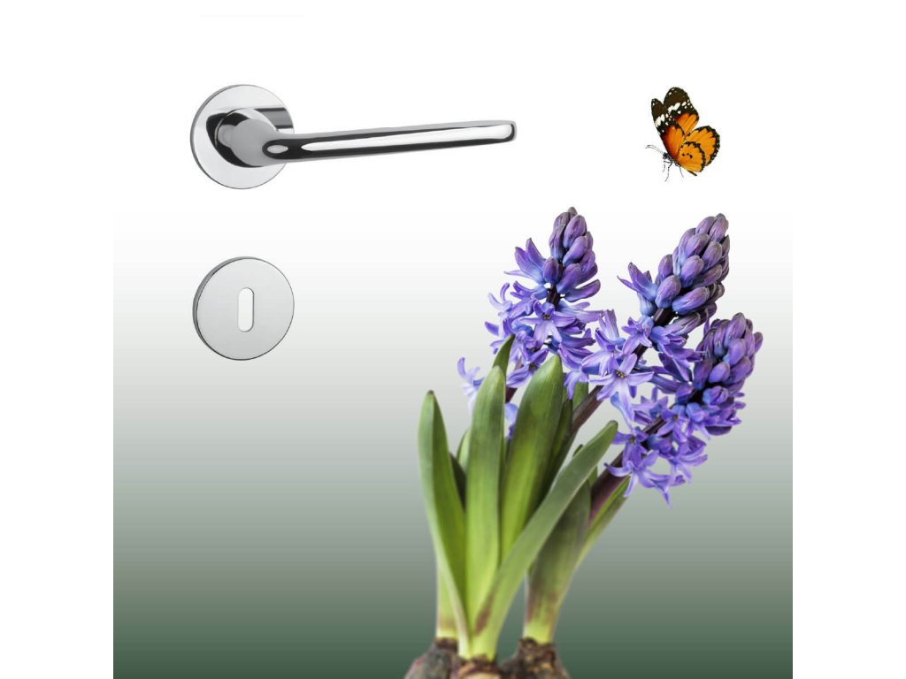 Rozetová kľučka na interiérové dvere s okrúhlou rozetou je vyrobená z materiálov vysokej kvality - zamak a je povrchovo upravená. Rozeta má priemer 52 mm a hrúbku len 5 mm. Minimalistický dizajn rozety s vysokou stabilitou kľučky na dverách pôsobí jemne, a tým ponecháva priestor pre vyniknutie dizajnu samotnej kľučky.