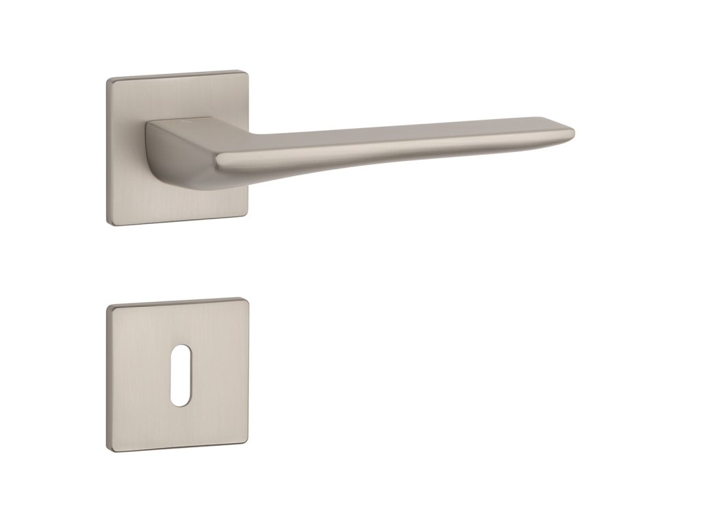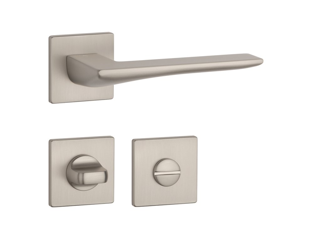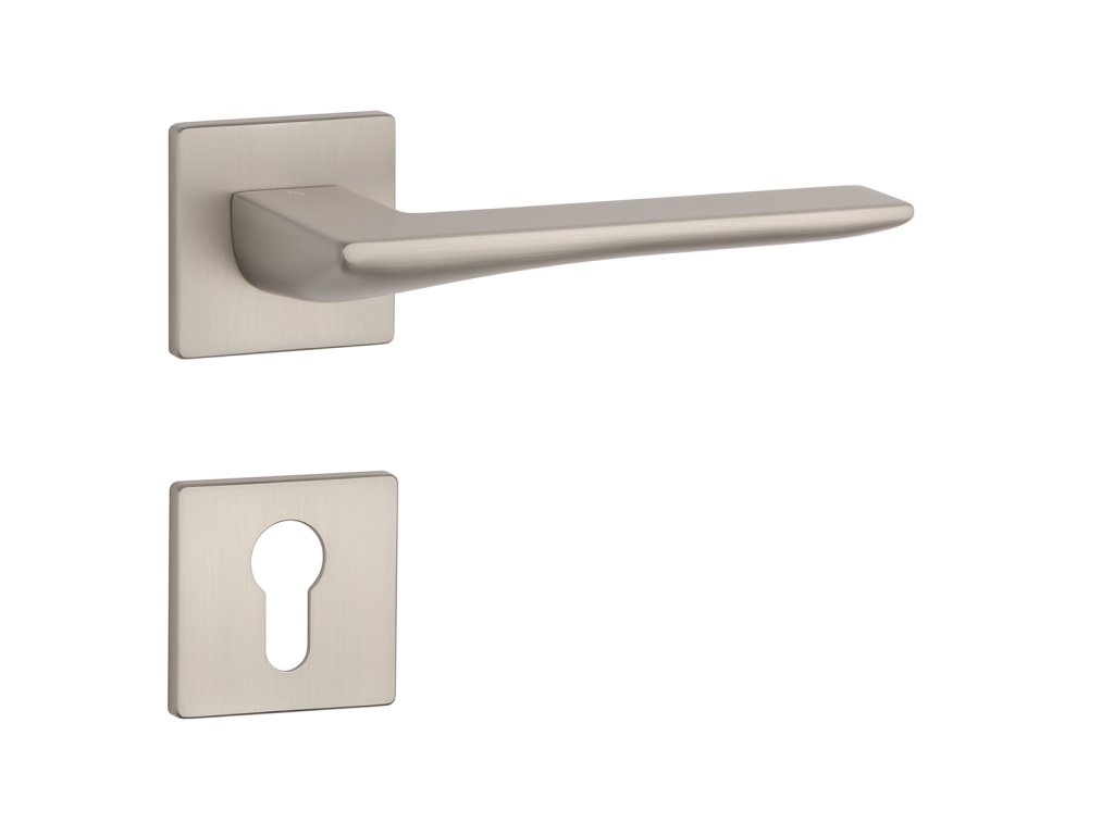 Rozetová kľučka na interiérové dvere s hranatou rozetou je vyrobená z materiálov vysokej kvality - zamak a je povrchovo upravená. Rozeta má rozmer 52x52 mm a hrúbku len 5 mm. Minimalistický dizajn rozety s vysokou stabilitou kľučky na dverách pôsobí jemne, a tým ponecháva priestor pre vyniknutie dizajnu samotnej kľučky.