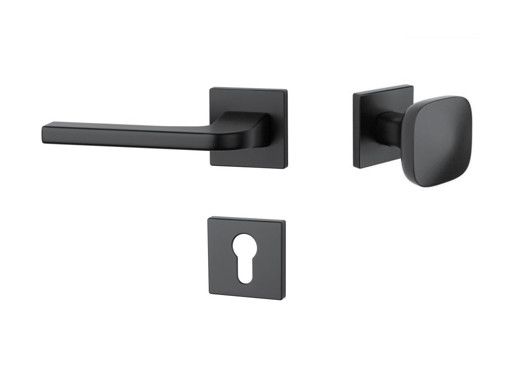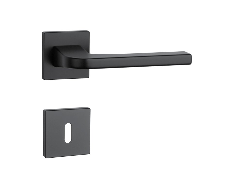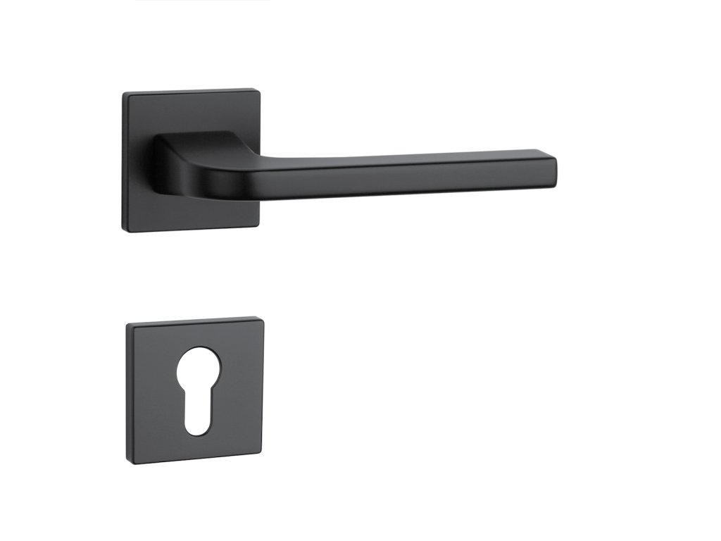 Rozetová kľučka na interiérové dvere s hranatou rozetou je vyrobená z materiálov vysokej kvality - zamak a je povrchovo upravená. Rozeta má rozmer 52x52 mm a hrúbku len 7 mm.