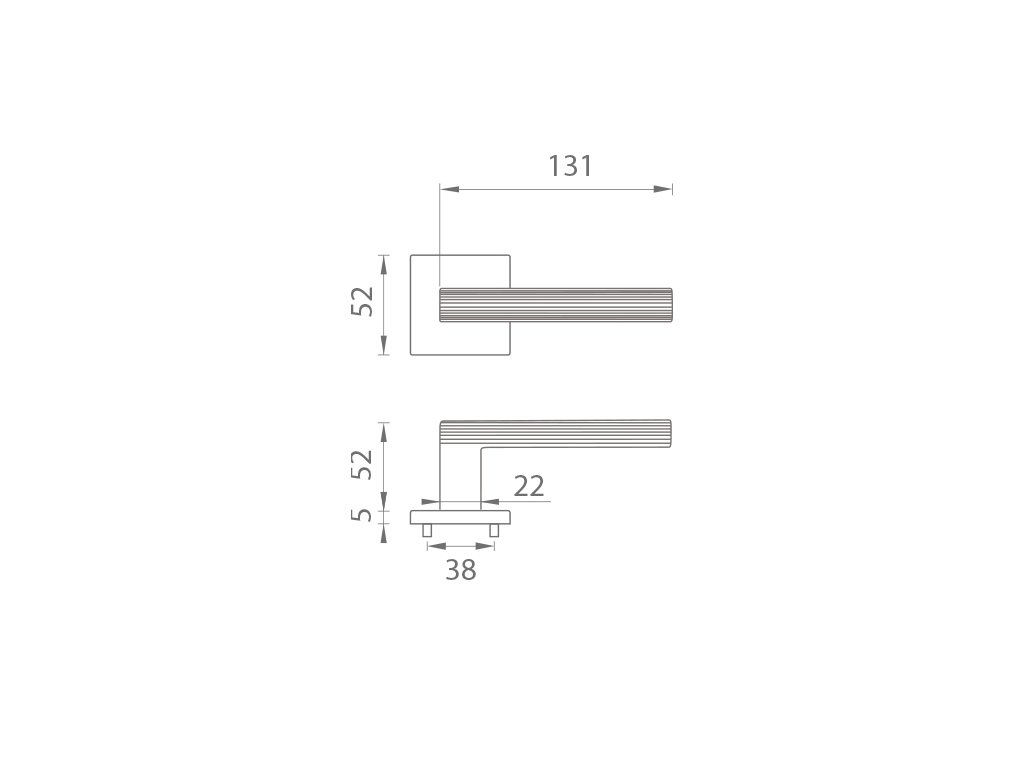 Rozetová kľučka na interiérové dvere s hranatou rozetou je vyrobená z materiálov vysokej kvality - zamak a je povrchovo upravená. Rozeta má rozmer 52x52 mm a hrúbku len 5 mm.