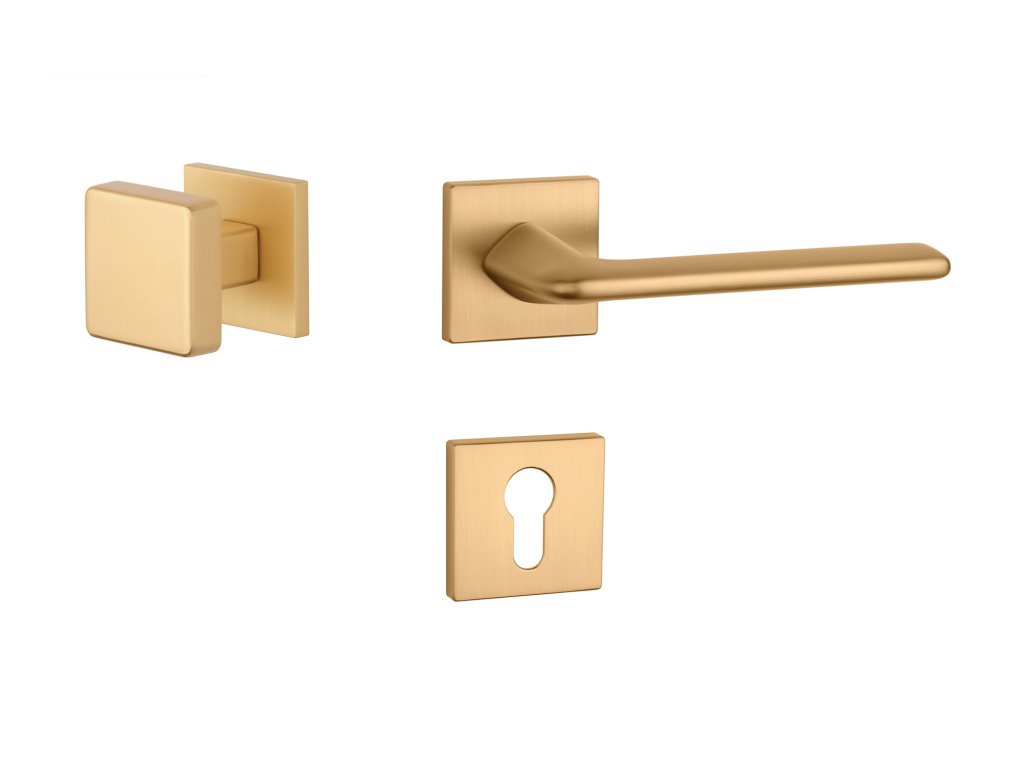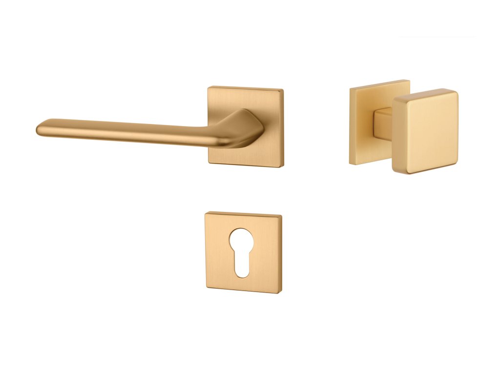 Rozetová kľučka na interiérové dvere s hranatou rozetou je vyrobená z materiálov vysokej kvality - zamak a je povrchovo upravená. Rozeta má rozmer 52x52 mm a hrúbku len 7 mm. Minimalistický dizajn rozety s vysokou stabilitou kľučky na dverách pôsobí jemne, a tým ponecháva priestor pre vyniknutie dizajnu samotnej kľučky.