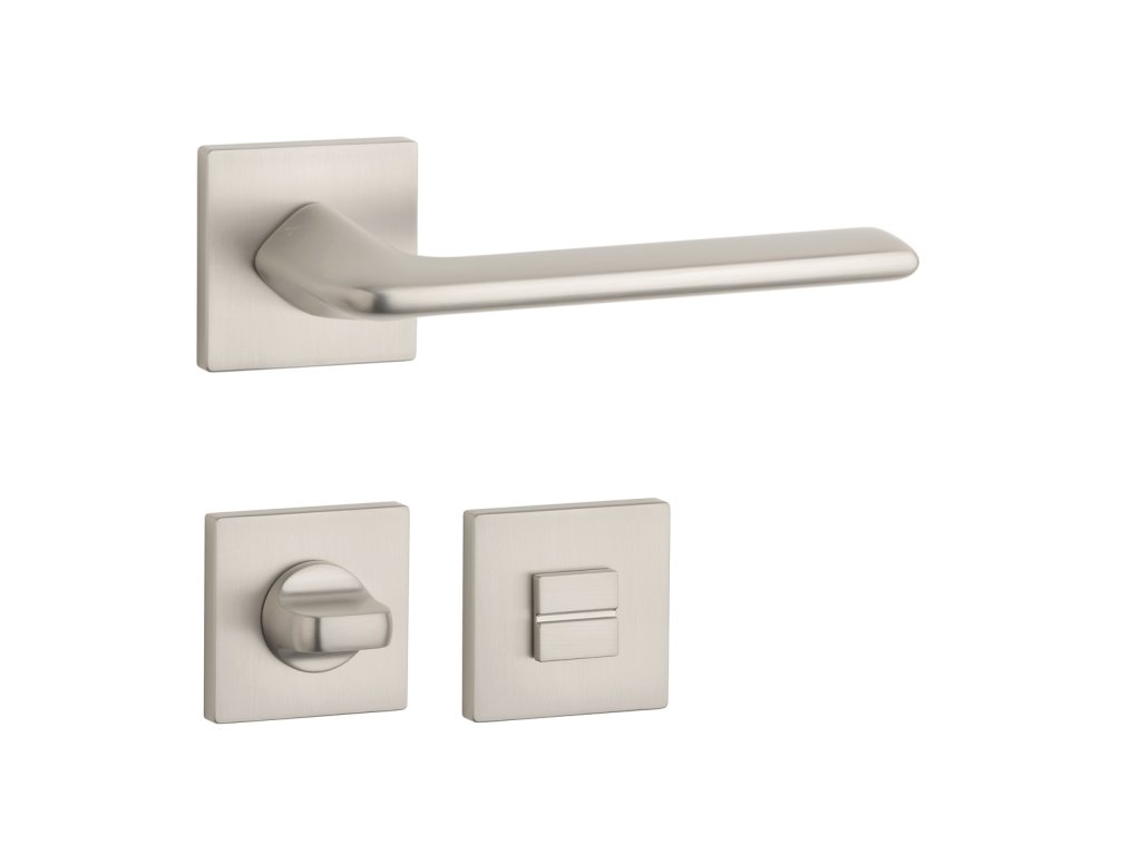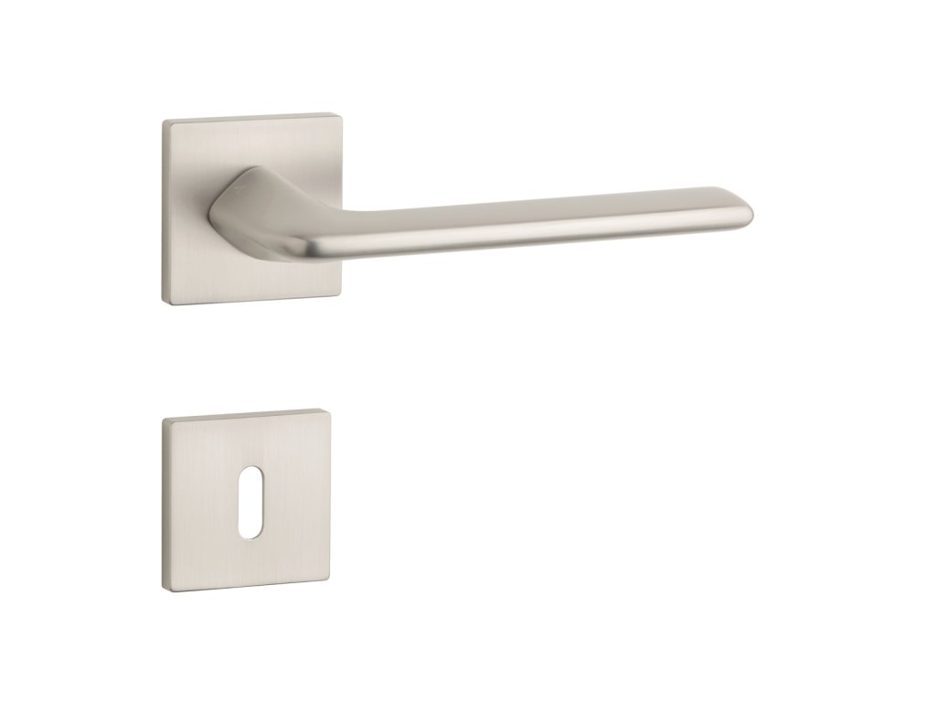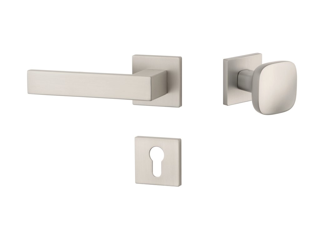 Rozetová kľučka na interiérové dvere s hranatou rozetou je vyrobená z materiálov vysokej kvality - zamak a je povrchovo upravená. Rozeta má rozmer 52x52 mm a hrúbku len 7 mm. Minimalistický dizajn rozety s vysokou stabilitou kľučky na dverách pôsobí jemne, a tým ponecháva priestor pre vyniknutie dizajnu samotnej kľučky.