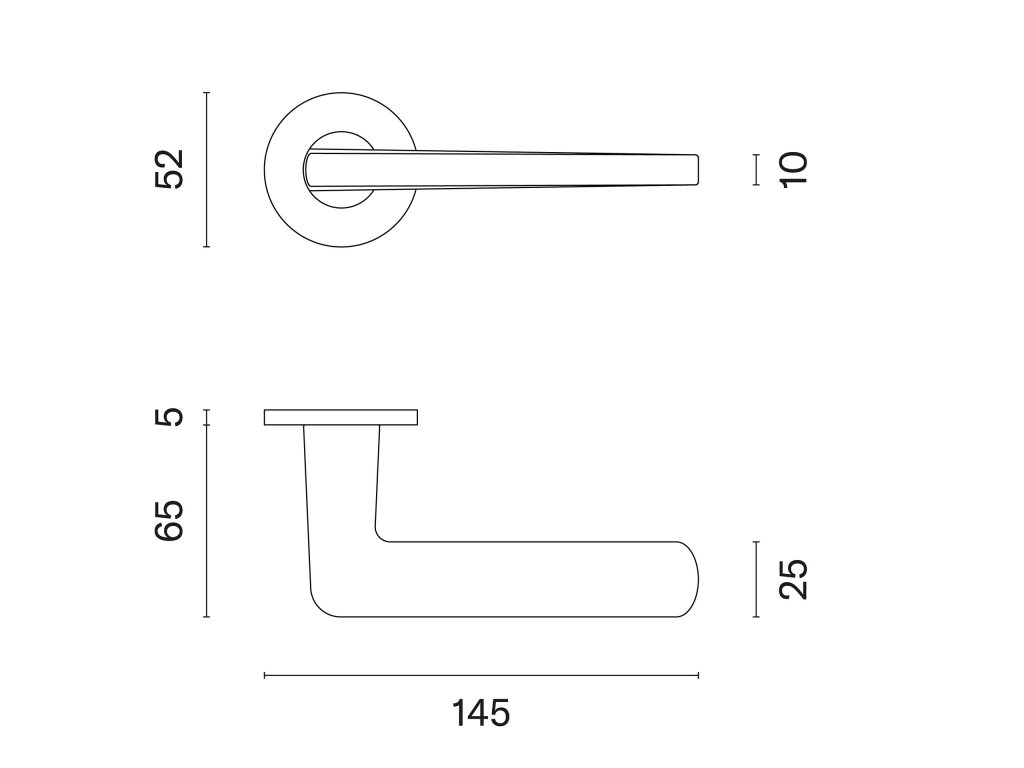 Rozetová kľučka na interiérové dvere s okrúhlou rozetou je vyrobená z materiálov vysokej kvality - zamak a je povrchovo upravená. Rozeta má priemer 52 mm a hrúbku len 5 mm. Minimalistický dizajn rozety s vysokou stabilitou kľučky na dverách pôsobí jemne, a tým ponecháva priestor pre vyniknutie dizajnu samotnej kľučky.