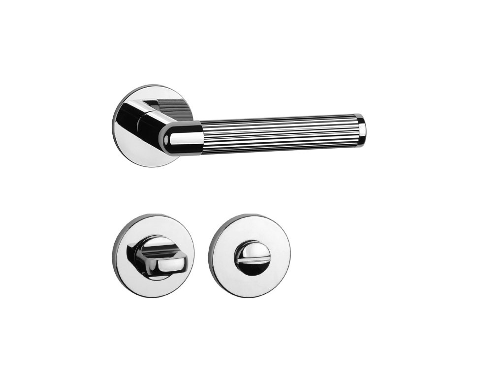 Rozetová kľučka na interiérové dvere s okrúhlou rozetou je vyrobená z materiálov vysokej kvality - zamak a je povrchovo upravená. Rozeta má priemer 52 mm a hrúbku len 5 mm. Minimalistický dizajn rozety s vysokou stabilitou kľučky na dverách pôsobí jemne, a tým ponecháva priestor pre vyniknutie dizajnu samotnej kľučky.