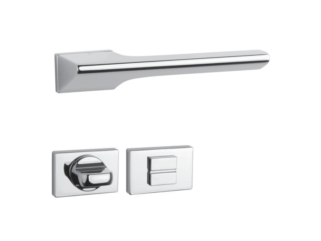 Rozetová kľučka na interiérové dvere s obĺžnikovou rozetou je vyrobená z materiálov vysokej kvality - zamak a je povrchovo upravená. Rozeta má rozmer 52 x 33 mm a hrúbku len 7 mm. Minimalistický dizajn rozety s vysokou stabilitou kľučky na dverách pôsobí jemne, a tým ponecháva priestor pre vyniknutie dizajnu samotnej kľučky.