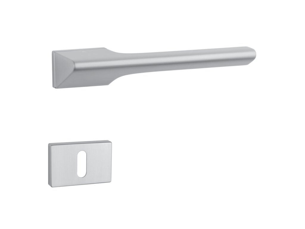 Rozetová kľučka na interiérové dvere s obĺžnikovou rozetou je vyrobená z materiálov vysokej kvality - zamak a je povrchovo upravená. Rozeta má rozmer 52 x 33 mm a hrúbku len 7 mm. Minimalistický dizajn rozety s vysokou stabilitou kľučky na dverách pôsobí jemne, a tým ponecháva priestor pre vyniknutie dizajnu samotnej kľučky.