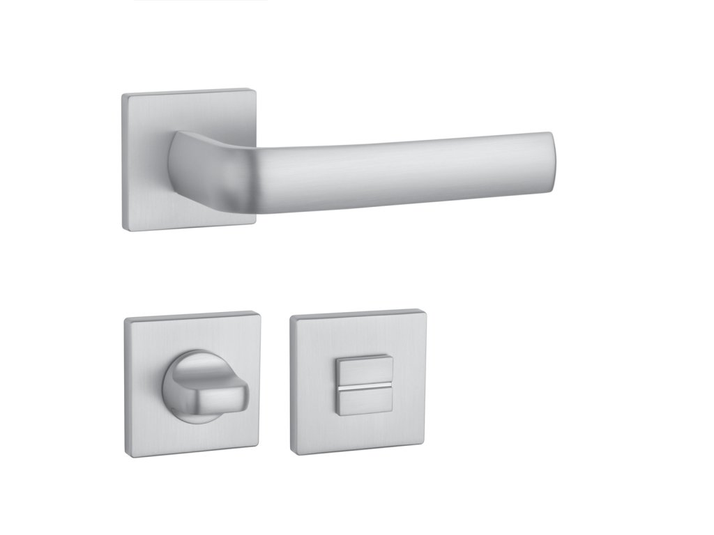 Rozetová kľučka na interiérové dvere s hranatou rozetou je vyrobená z materiálov vysokej kvality - zamak a je povrchovo upravená. Rozeta má rozmer 52x52 mm a hrúbku len 7 mm. Minimalistický dizajn rozety s vysokou stabilitou kľučky na dverách pôsobí jemne, a tým ponecháva priestor pre vyniknutie dizajnu samotnej kľučky.
