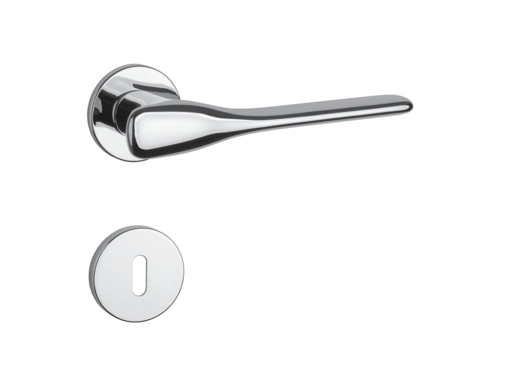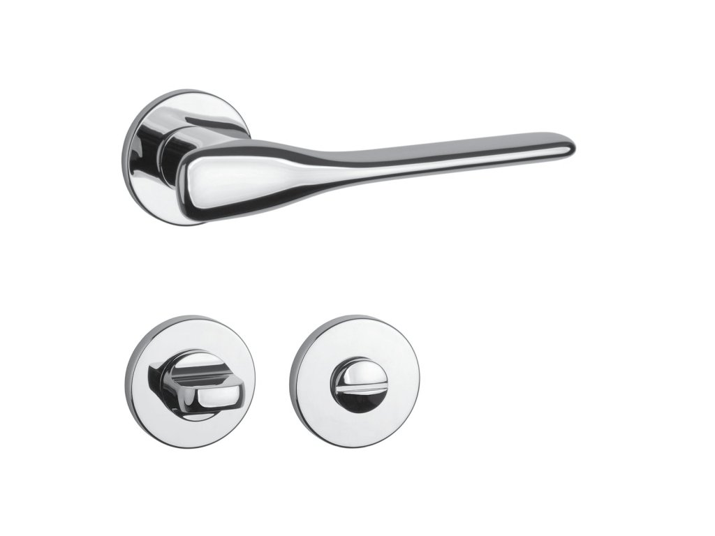 Rozetová kľučka na interiérové dvere s okrúhlou rozetou je vyrobená z materiálov vysokej kvality - zamak a je povrchovo upravená. Rozeta má priemer 52 mm a hrúbku len 7 mm. Minimalistický dizajn rozety s vysokou stabilitou kľučky na dverách pôsobí jemne, a tým ponecháva priestor pre vyniknutie dizajnu samotnej kľučky.
