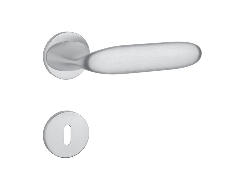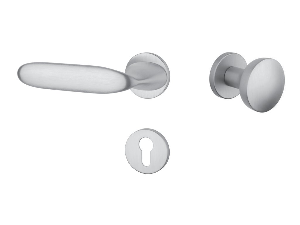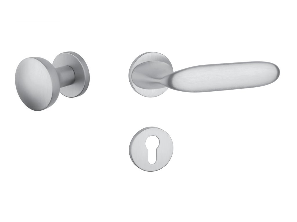 Rozetová kľučka na interiérové dvere s okrúhlou rozetou je vyrobená z materiálov vysokej kvality - zamak a je povrchovo upravená. Rozeta má priemer 52 mm a hrúbku len 7 mm. Minimalistický dizajn rozety s vysokou stabilitou kľučky na dverách pôsobí jemne, a tým ponecháva priestor pre vyniknutie dizajnu samotnej kľučky.