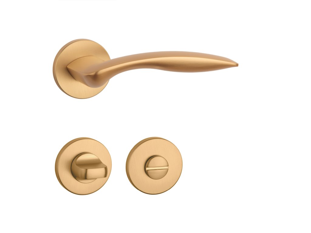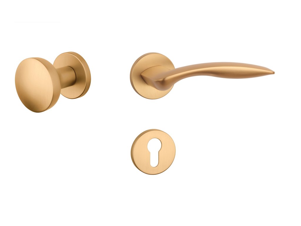 Rozetová kľučka na interiérové dvere s okrúhlou rozetou je vyrobená z materiálov vysokej kvality - zamak a je povrchovo upravená. Rozeta má priemer 52 mm a hrúbku len 7 mm.