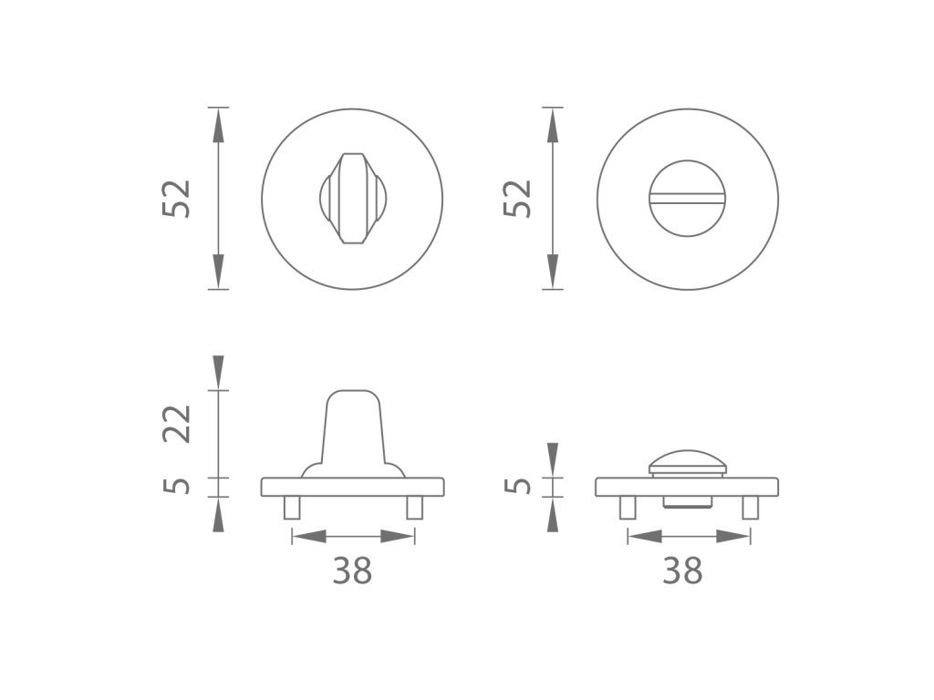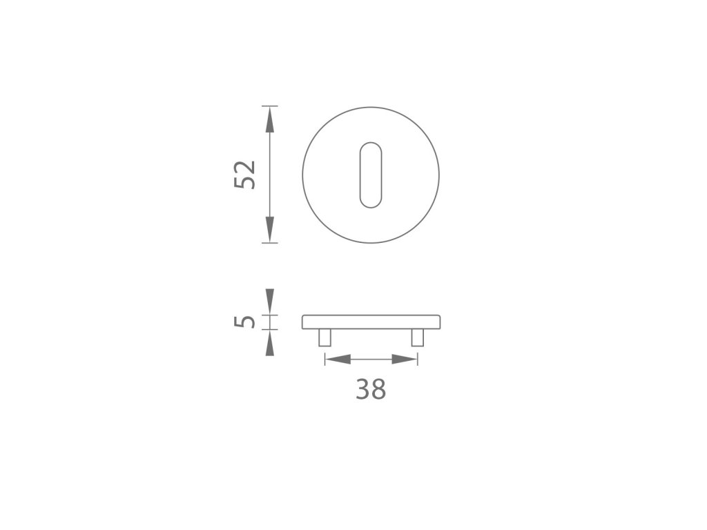 Okrúhla rozeta je vyrobená z materiálov vysokej kvality - zamak a je povrchovo upravená. Rozeta má priemer 52 mm, hrúbku 5 mm a oválny otvor pre interiérový kľúč (BB), otvor pre cylindrickú vložku (PZ), WC set s vmontovaným kľúčom. Balenie obsahuje 2 kusy roziet (pár) a rozety WC sú v balení ako set.Dodatočné parametre