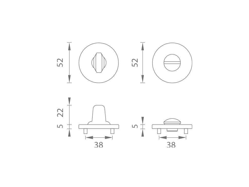 Okrúhla rozeta je vyrobená z materiálov vysokej kvality - zamak a je povrchovo upravená. Rozeta má priemer 52 mm, hrúbku 5 mm a oválny otvor pre interiérový kľúč (BB), otvor pre cylindrickú vložku (PZ), WC set s vmontovaným kľúčom. Balenie obsahuje 2 kusy roziet (pár) a rozety WC sú v balení ako set.Dodatočné parametre