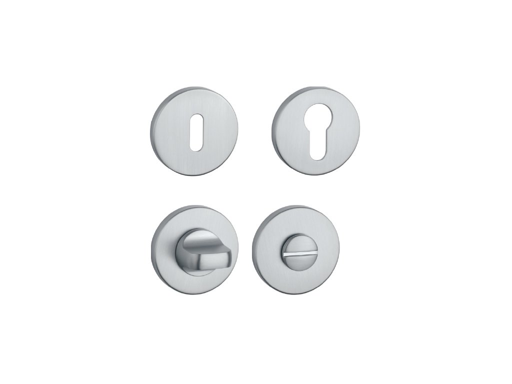 Rozeta má oválny otvor pre interiérový kľúč (BB), otvor pre cylindrickú vložku (PZ), WC set s vmontovaným kľúčom.