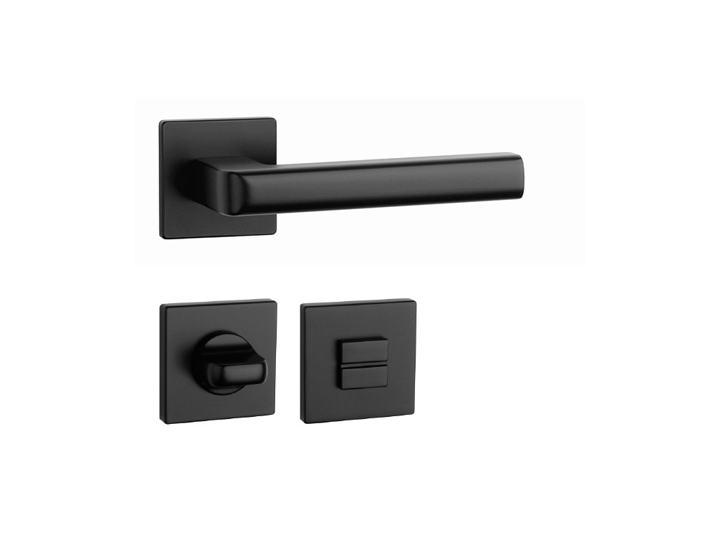 Rozetová kľučka na interiérové dvere s hranatou rozetou je vyrobená z materiálov vysokej kvality - zamak a je povrchovo upravená. Rozeta má rozmer 52x52 mm a hrúbku len 5 mm. Minimalistický dizajn rozety s vysokou stabilitou kľučky na dverách pôsobí jemne, a tým ponecháva priestor pre vyniknutie dizajnu samotnej kľučky.
