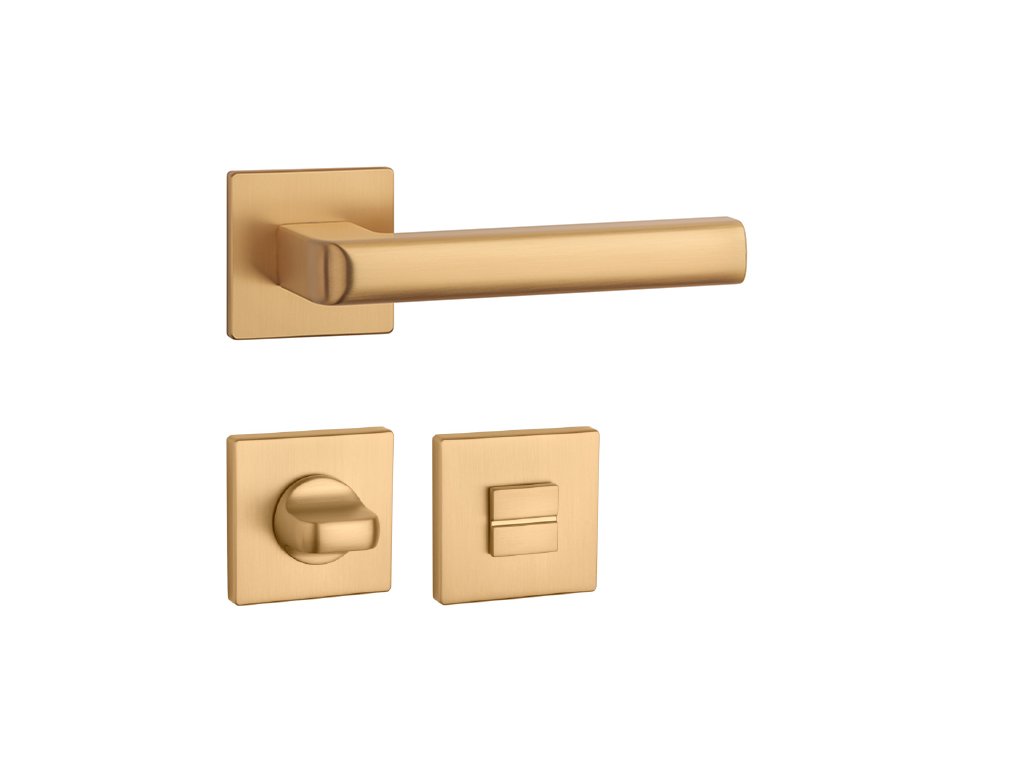 Rozetová kľučka na interiérové dvere s hranatou rozetou je vyrobená z materiálov vysokej kvality - zamak a je povrchovo upravená. Rozeta má rozmer 52x52 mm a hrúbku len 5 mm. Minimalistický dizajn rozety s vysokou stabilitou kľučky na dverách pôsobí jemne, a tým ponecháva priestor pre vyniknutie dizajnu samotnej kľučky.