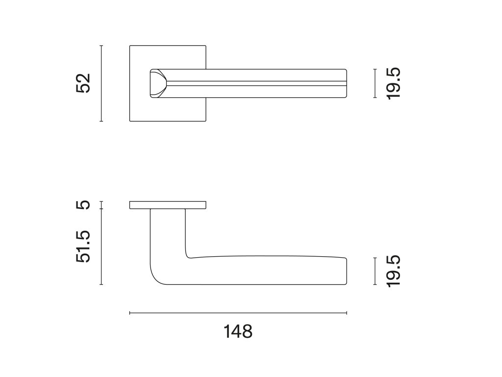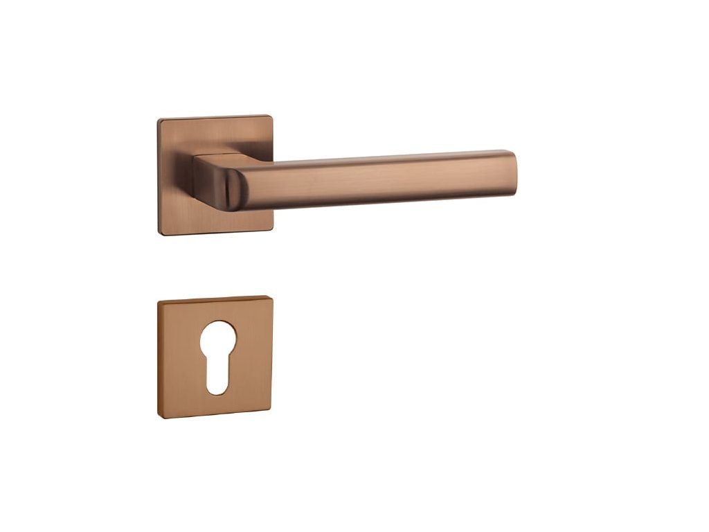 Rozetová kľučka na interiérové dvere s hranatou rozetou je vyrobená z materiálov vysokej kvality - zamak a je povrchovo upravená. Rozeta má rozmer 52x52 mm a hrúbku len 5 mm. Minimalistický dizajn rozety s vysokou stabilitou kľučky na dverách pôsobí jemne, a tým ponecháva priestor pre vyniknutie dizajnu samotnej kľučky.