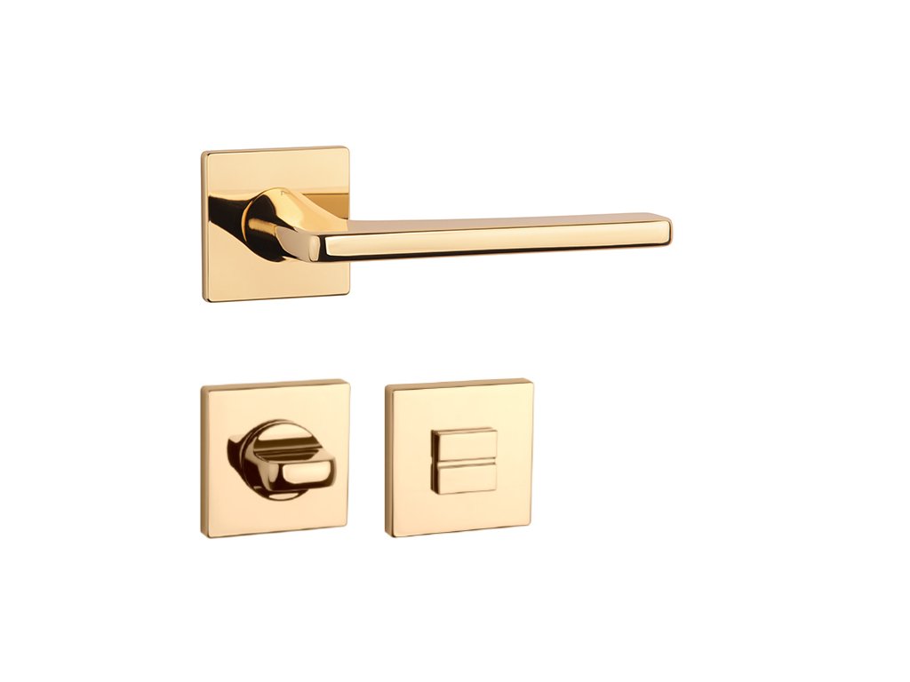 Rozetová kľučka na interiérové dvere s hranatou rozetou je vyrobená z materiálov vysokej kvality - zamak a je povrchovo upravená. Rozeta má rozmer 52x52 mm a hrúbku len 5 mm. Minimalistický dizajn rozety s vysokou stabilitou kľučky na dverách pôsobí jemne, a tým ponecháva priestor pre vyniknutie dizajnu samotnej kľučky.