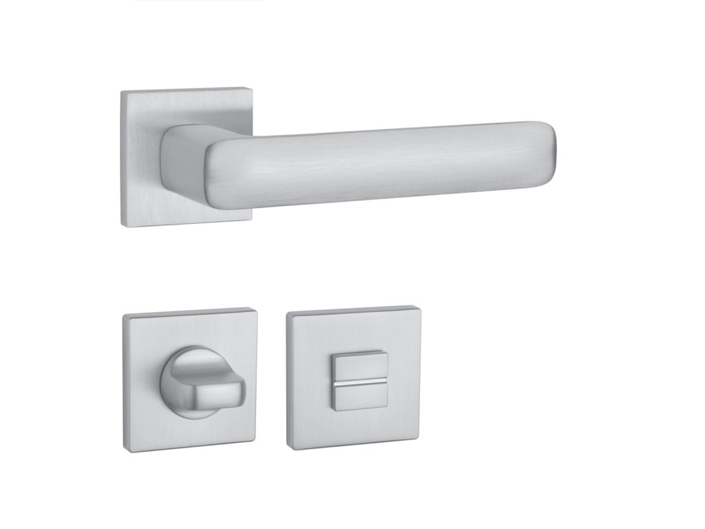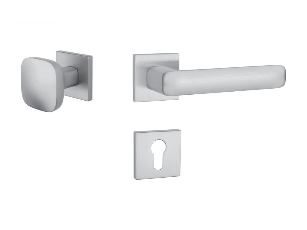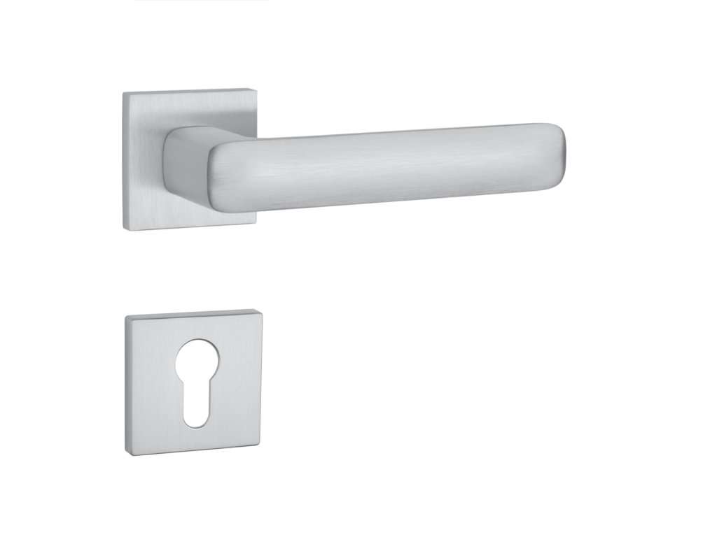 Rozetová kľučka na interiérové dvere s hranatou rozetou je vyrobená z materiálov vysokej kvality - zamak a je povrchovo upravená. Rozeta má rozmer 52x52 mm a hrúbku len 7 mm. Minimalistický dizajn rozety s vysokou stabilitou kľučky na dverách pôsobí jemne, a tým ponecháva priestor pre vyniknutie dizajnu samotnej kľučky.