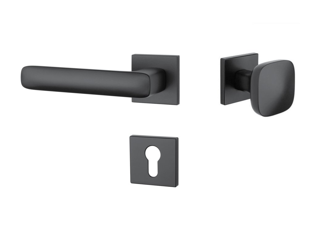 Rozetová kľučka na interiérové dvere s hranatou rozetou je vyrobená z materiálov vysokej kvality - zamak a je povrchovo upravená. Rozeta má rozmer 52x52 mm a hrúbku len 7 mm. Minimalistický dizajn rozety s vysokou stabilitou kľučky na dverách pôsobí jemne, a tým ponecháva priestor pre vyniknutie dizajnu samotnej kľučky.