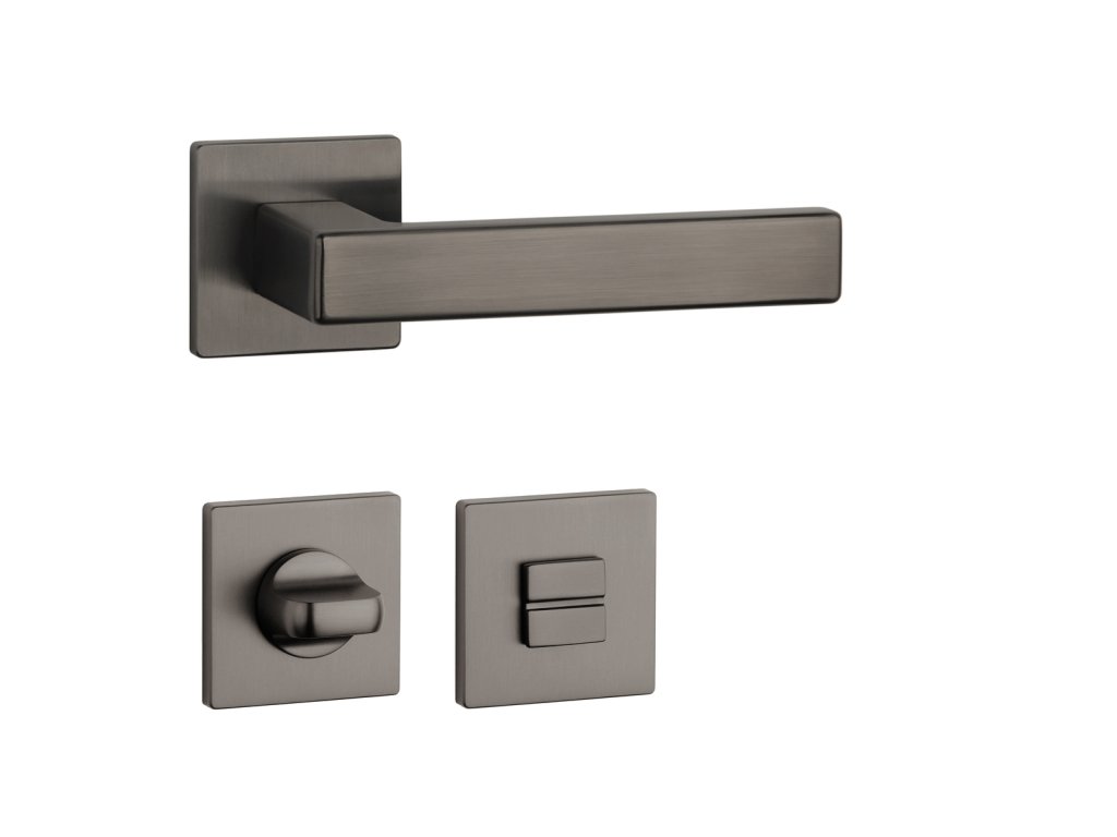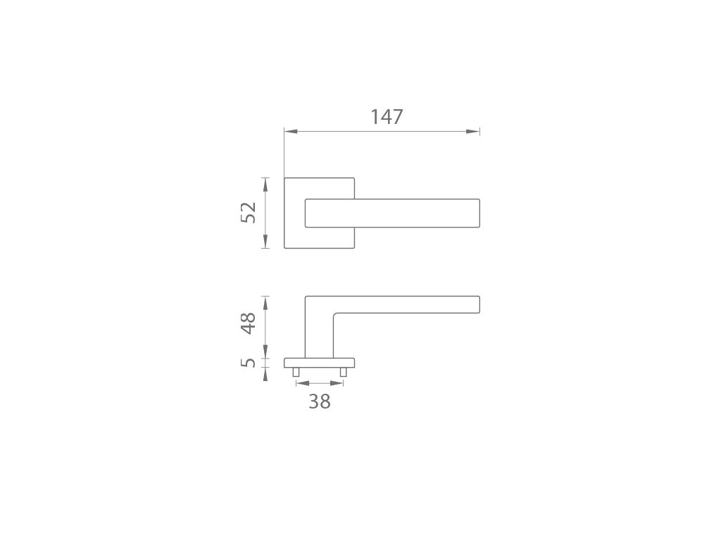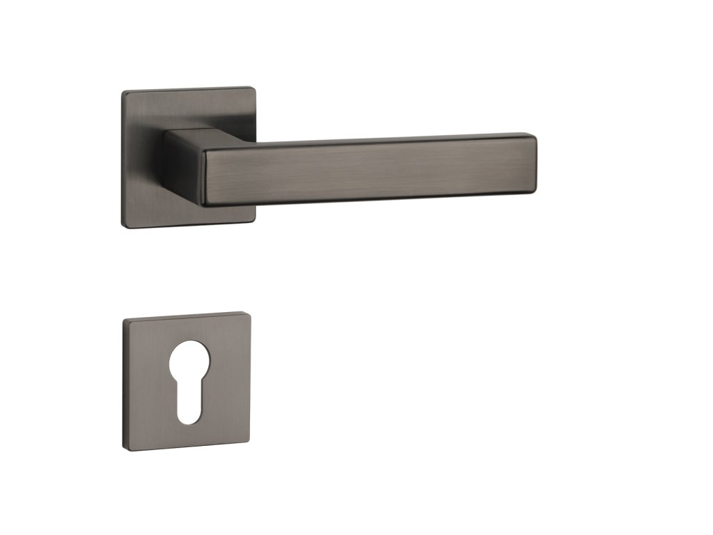 Rozetová kľučka na interiérové dvere s hranatou rozetou je vyrobená z materiálov vysokej kvality - zamak a je povrchovo upravená. Rozeta má rozmer 52x52 mm a hrúbku len 5 mm. Minimalistický dizajn rozety s vysokou stabilitou kľučky na dverách pôsobí jemne, a tým ponecháva priestor pre vyniknutie dizajnu samotnej kľučky.