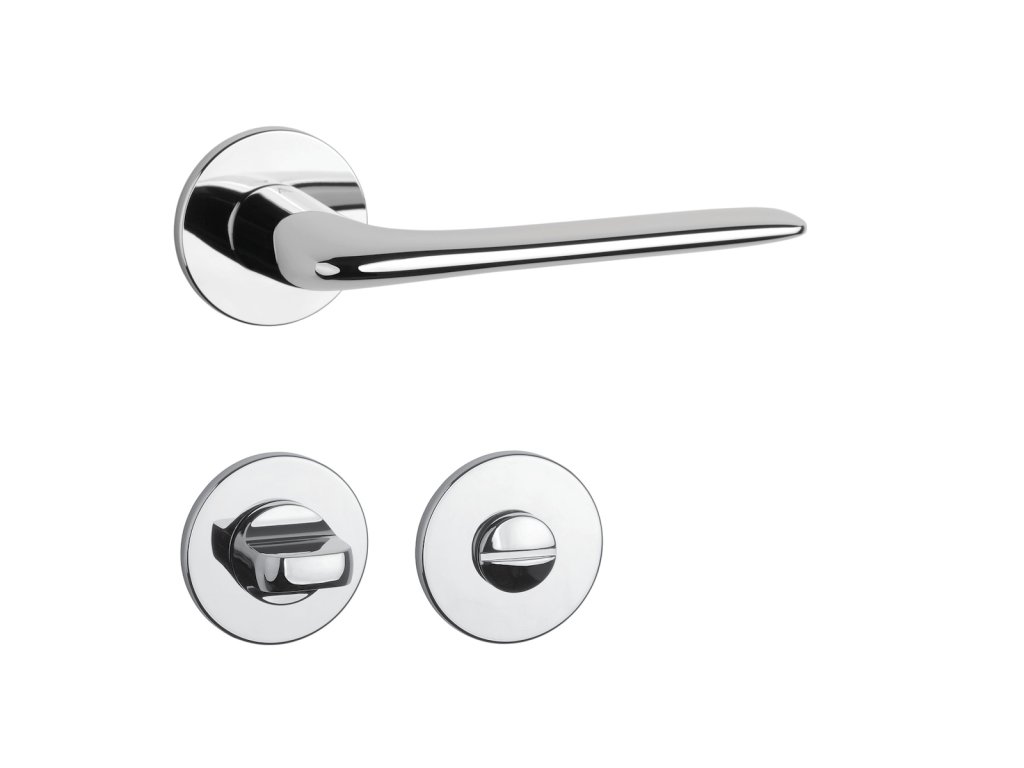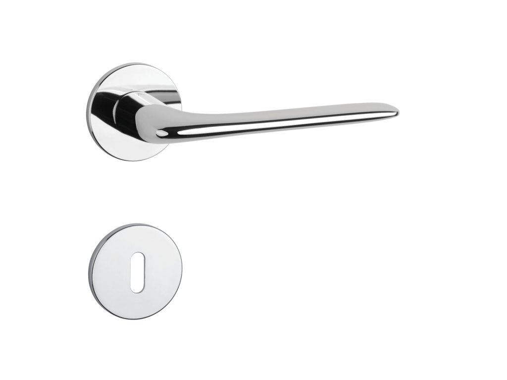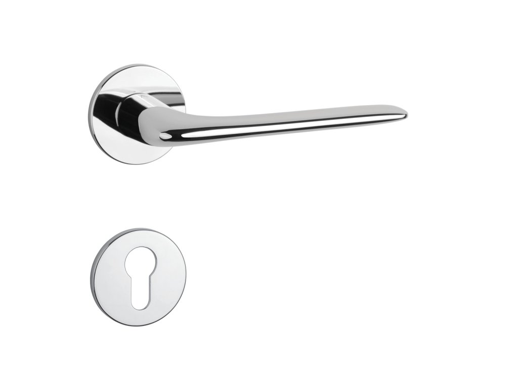 Rozetová kľučka na interiérové dvere s okrúhlou rozetou je vyrobená z materiálov vysokej kvality - zamak a je povrchovo upravená. Rozeta má priemer 52 mm a hrúbku len 5 mm. Minimalistický dizajn rozety s vysokou stabilitou kľučky na dverách pôsobí jemne, a tým ponecháva priestor pre vyniknutie dizajnu samotnej kľučky.