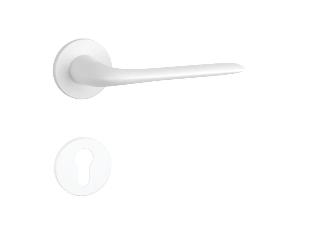 Rozetová kľučka na interiérové dvere s okrúhlou rozetou je vyrobená z materiálov vysokej kvality - zamak a je povrchovo upravená. Rozeta má priemer 52 mm a hrúbku len 5 mm. Minimalistický dizajn rozety s vysokou stabilitou kľučky na dverách pôsobí jemne, a tým ponecháva priestor pre vyniknutie dizajnu samotnej kľučky.