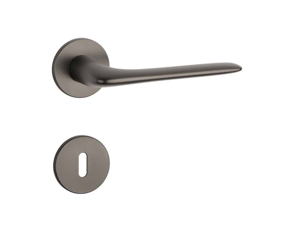Rozetová kľučka na interiérové dvere s okrúhlou rozetou je vyrobená z materiálov vysokej kvality - zamak a je povrchovo upravená. Rozeta má priemer 52 mm a hrúbku len 5 mm. Minimalistický dizajn rozety s vysokou stabilitou kľučky na dverách pôsobí jemne, a tým ponecháva priestor pre vyniknutie dizajnu samotnej kľučky.