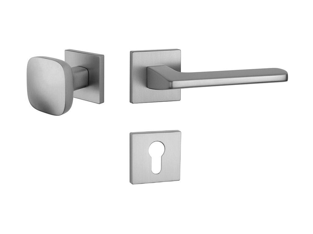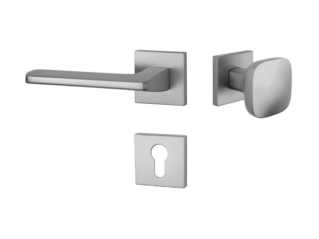 Rozetová kľučka na interiérové dvere s hranatou rozetou je vyrobená z materiálov vysokej kvality - zamak a je povrchovo upravená. Rozeta má rozmer 52x52 mm a hrúbku len 7 mm. Minimalistický dizajn rozety s vysokou stabilitou kľučky na dverách pôsobí jemne, a tým ponecháva priestor pre vyniknutie dizajnu samotnej kľučky.