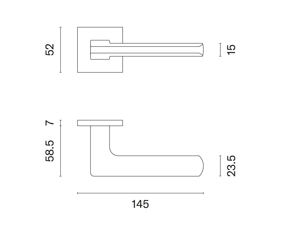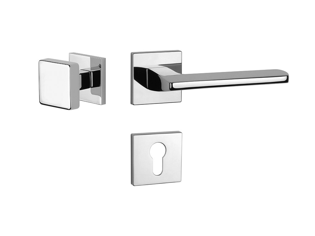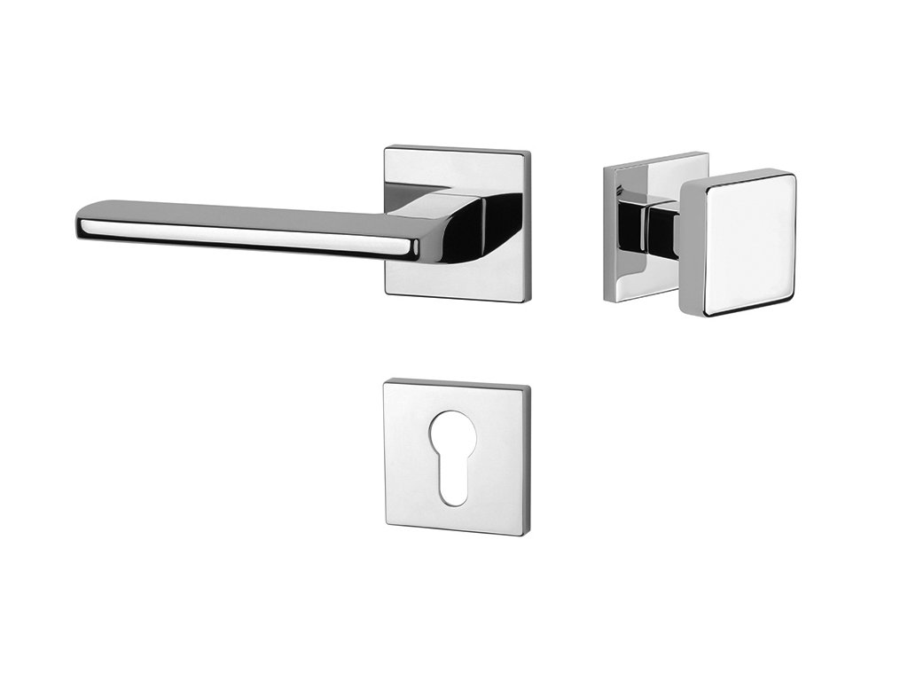 Rozetová kľučka na interiérové dvere s hranatou rozetou je vyrobená z materiálov vysokej kvality - zamak a je povrchovo upravená. Rozeta má rozmer 52x52 mm a hrúbku len 7 mm. Minimalistický dizajn rozety s vysokou stabilitou kľučky na dverách pôsobí jemne, a tým ponecháva priestor pre vyniknutie dizajnu samotnej kľučky.