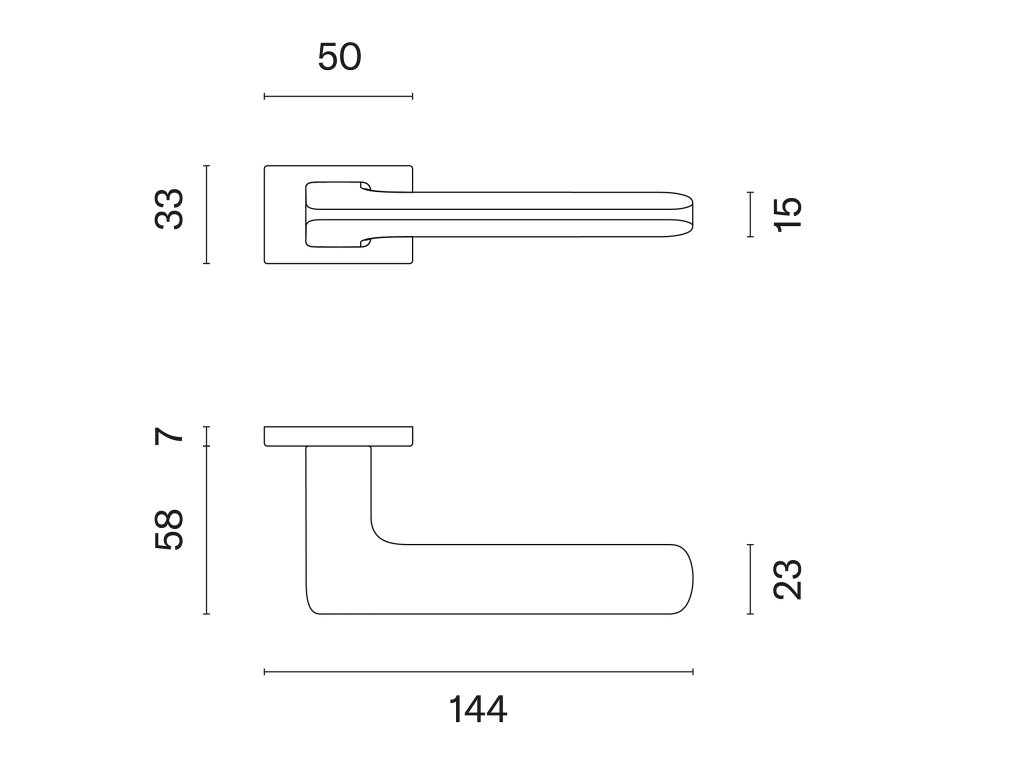 Rozetová kľučka na interiérové dvere s obĺžnikovou rozetou je vyrobená z materiálov vysokej kvality - zamak a je povrchovo upravená. Rozeta má rozmer 50 x 33 mm a hrúbku len 7 mm. Minimalistický dizajn rozety s vysokou stabilitou kľučky na dverách pôsobí jemne, a tým ponecháva priestor pre vyniknutie dizajnu samotnej kľučky.
