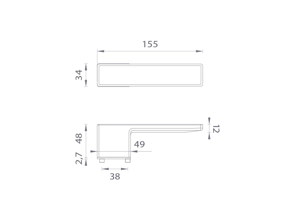 Rozetová kľučka na interiérové dvere s elegantnou obdĺžnikovou rozetou je vyrobená z materiálov vysokej kvality - zamak a je povrchovo upravená. Rozeta má rozmery 49 mm x 34 mm. Je tenká len 2,7 mm a stáva sa tak takmer neviditeľnou súčasťou dizajnu kľučky.