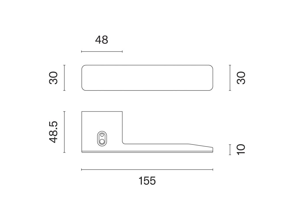 Rozetová kľučka na interiérové dvere s elegantnou hranatou rozetou je vyrobená z materiálov vysokej kvality - zamak a je povrchovo upravená. Rozeta má rozmery 48 mm x 30 mm. Je tenká len 2,5 mm a stáva sa tak takmer neviditeľnou súčasťou dizajnu kľučky.