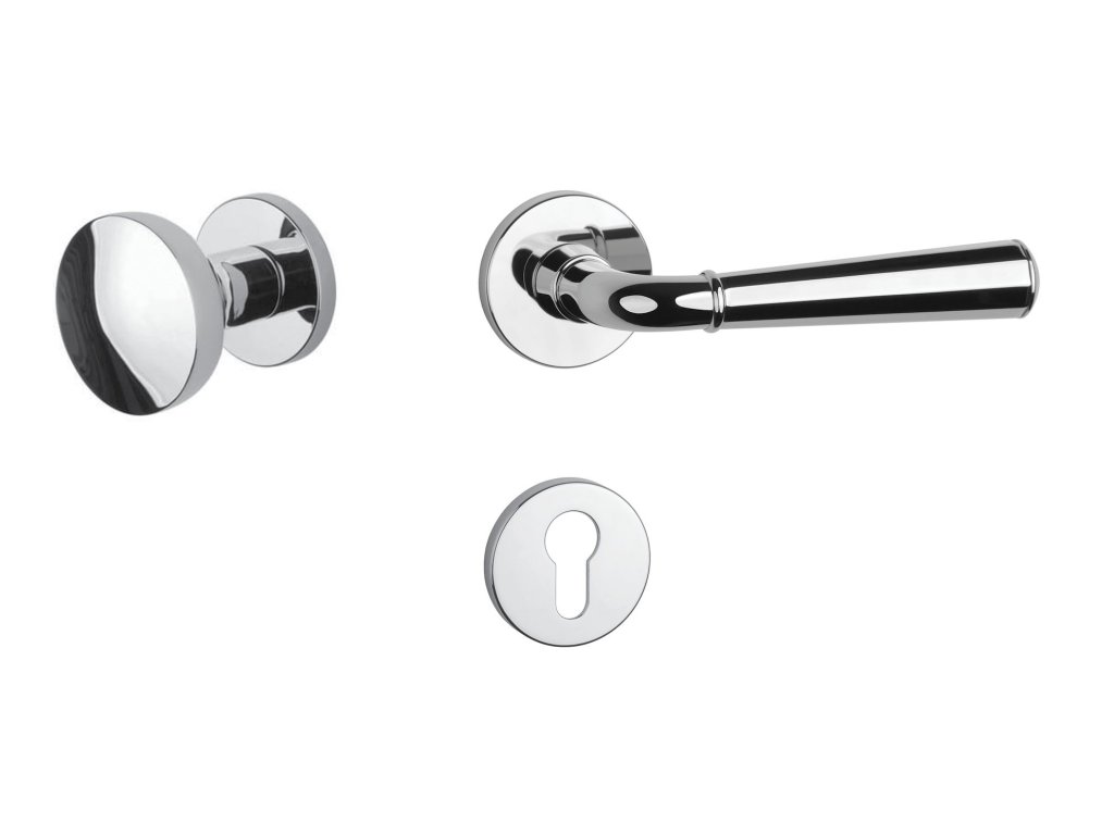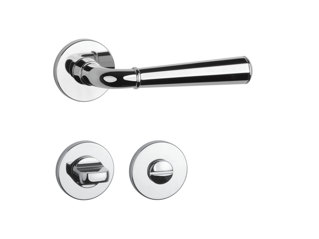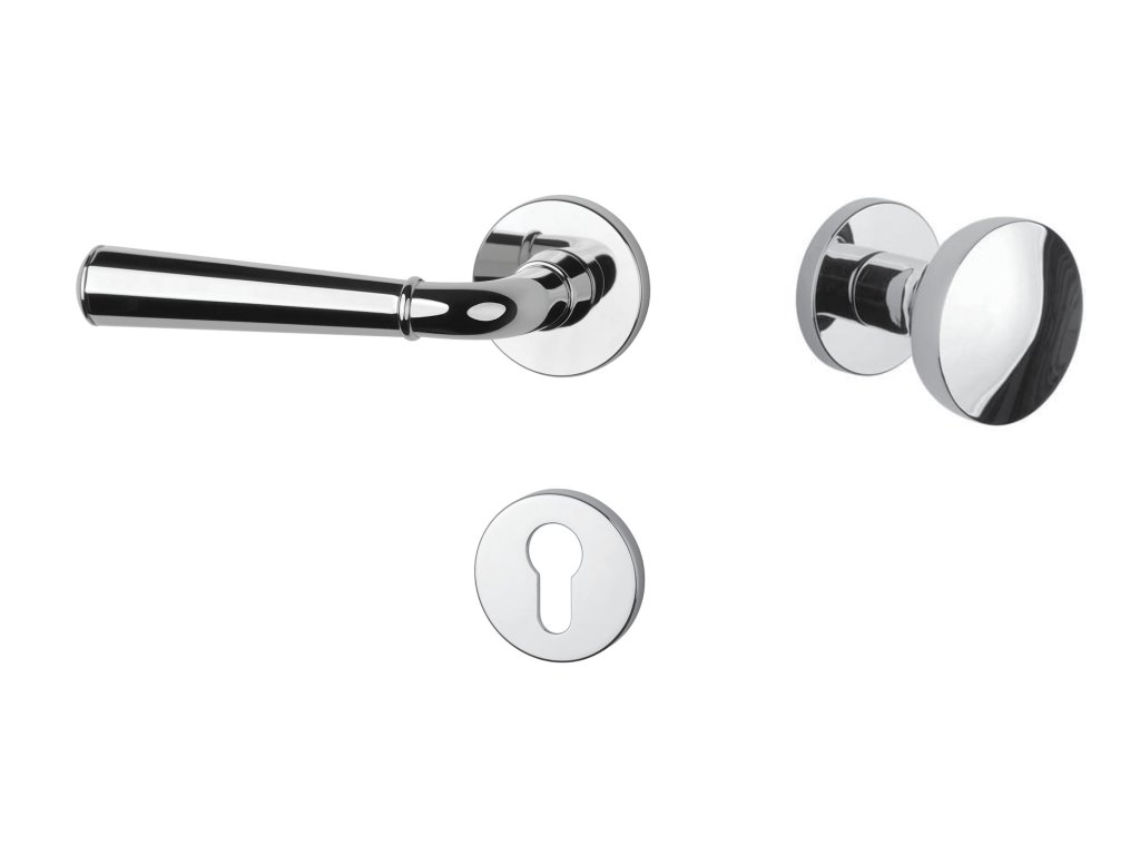 Mechanizmus kľučky obsahuje vratnú pružinu. Výstupky na rozete zabraňujú jej pretáčaniu a skrutky na preskrutkovanie cez celú šírku dverí zaručia pevnejšie a stabilnejšie uchytenie kovania.