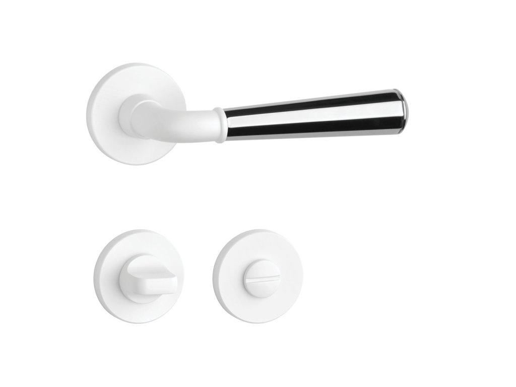 Mechanizmus kľučky obsahuje vratnú pružinu. Výstupky na rozete zabraňujú jej pretáčaniu a skrutky na preskrutkovanie cez celú šírku dverí zaručia pevnejšie a stabilnejšie uchytenie kovania.