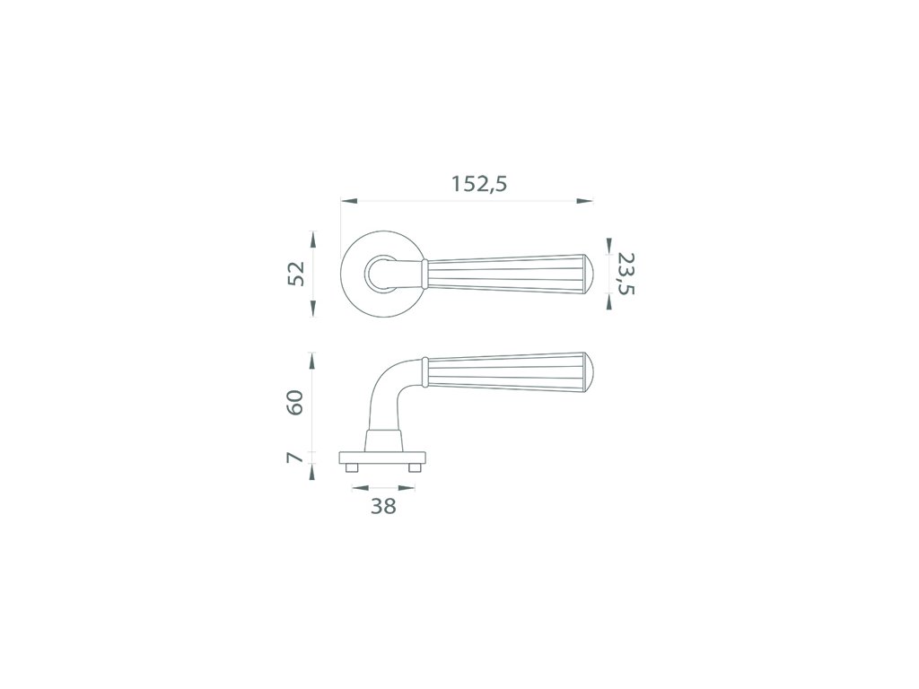 Mechanizmus kľučky obsahuje vratnú pružinu. Výstupky na rozete zabraňujú jej pretáčaniu a skrutky na preskrutkovanie cez celú šírku dverí zaručia pevnejšie a stabilnejšie uchytenie kovania.