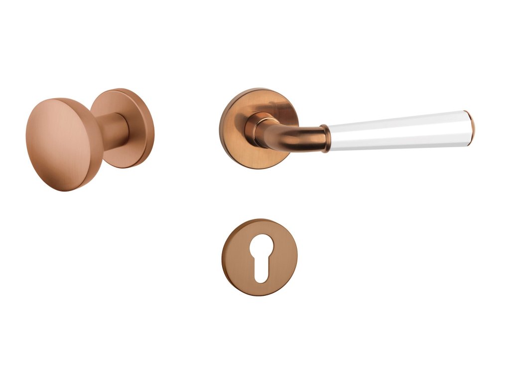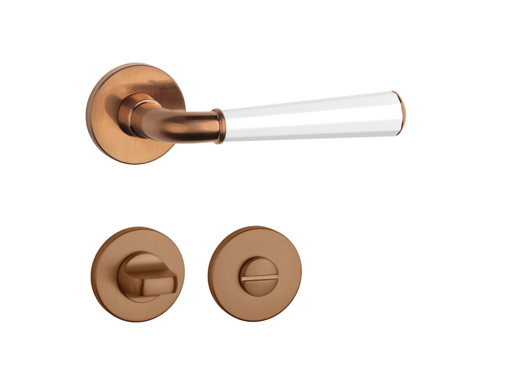 Mechanizmus kľučky obsahuje vratnú pružinu. Výstupky na rozete zabraňujú jej pretáčaniu a skrutky na preskrutkovanie cez celú šírku dverí zaručia pevnejšie a stabilnejšie uchytenie kovania.
