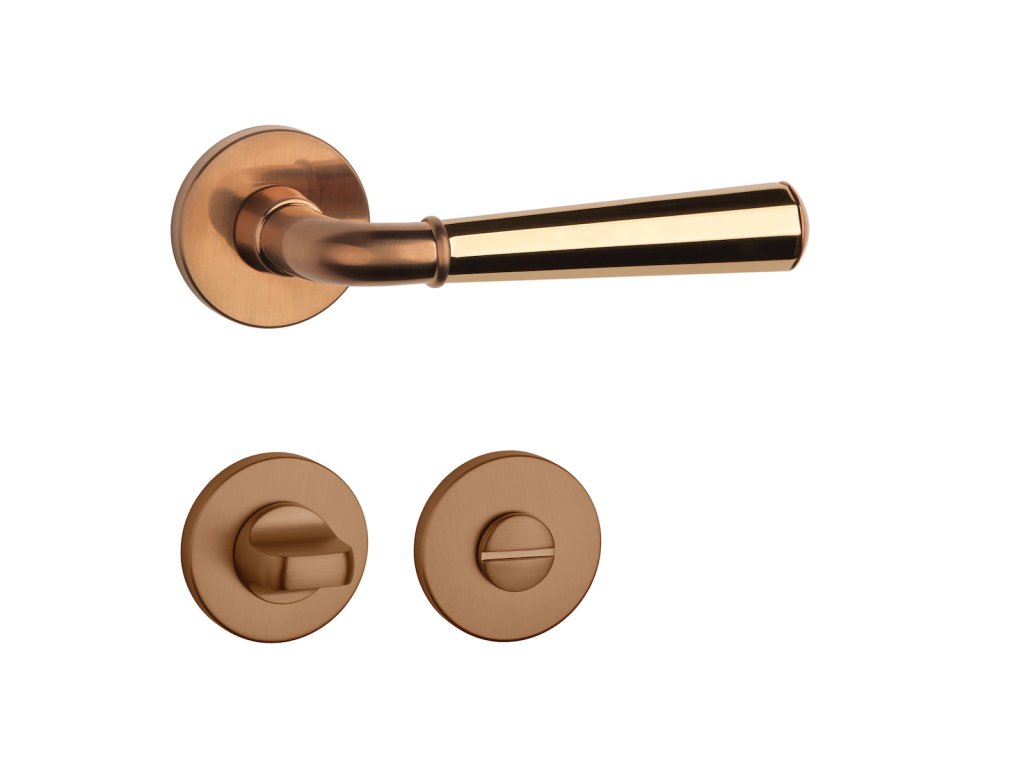 Mechanizmus kľučky obsahuje vratnú pružinu. Výstupky na rozete zabraňujú jej pretáčaniu a skrutky na preskrutkovanie cez celú šírku dverí zaručia pevnejšie a stabilnejšie uchytenie kovania.