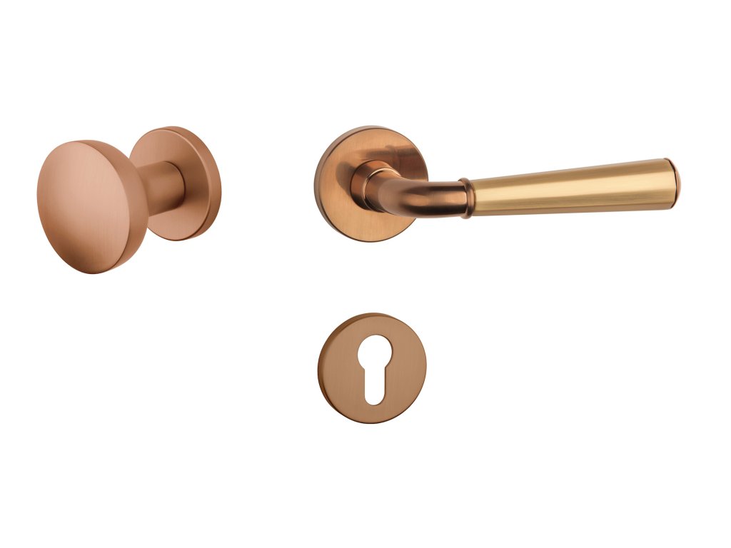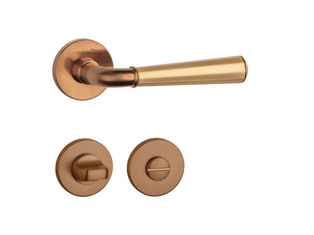 Mechanizmus kľučky obsahuje vratnú pružinu. Výstupky na rozete zabraňujú jej pretáčaniu a skrutky na preskrutkovanie cez celú šírku dverí zaručia pevnejšie a stabilnejšie uchytenie kovania.