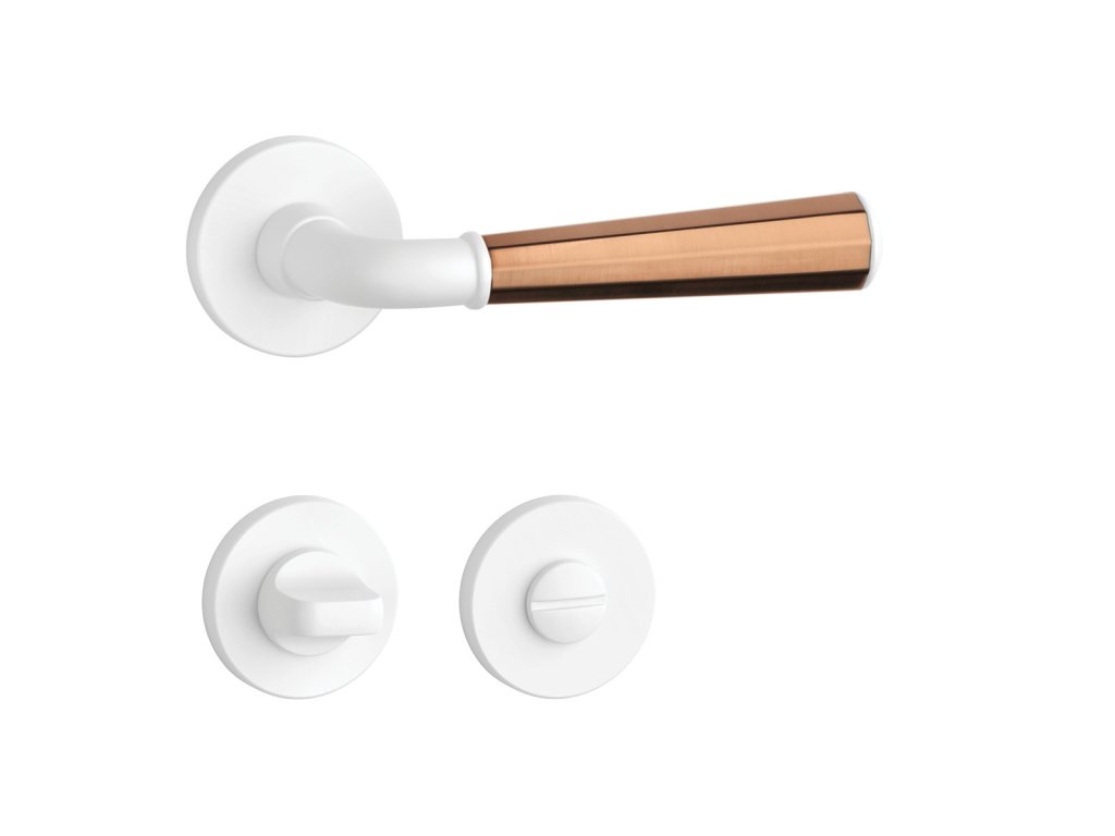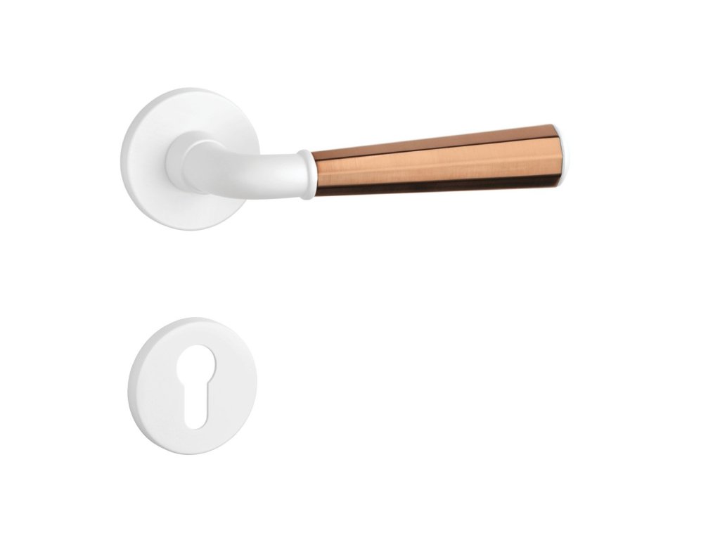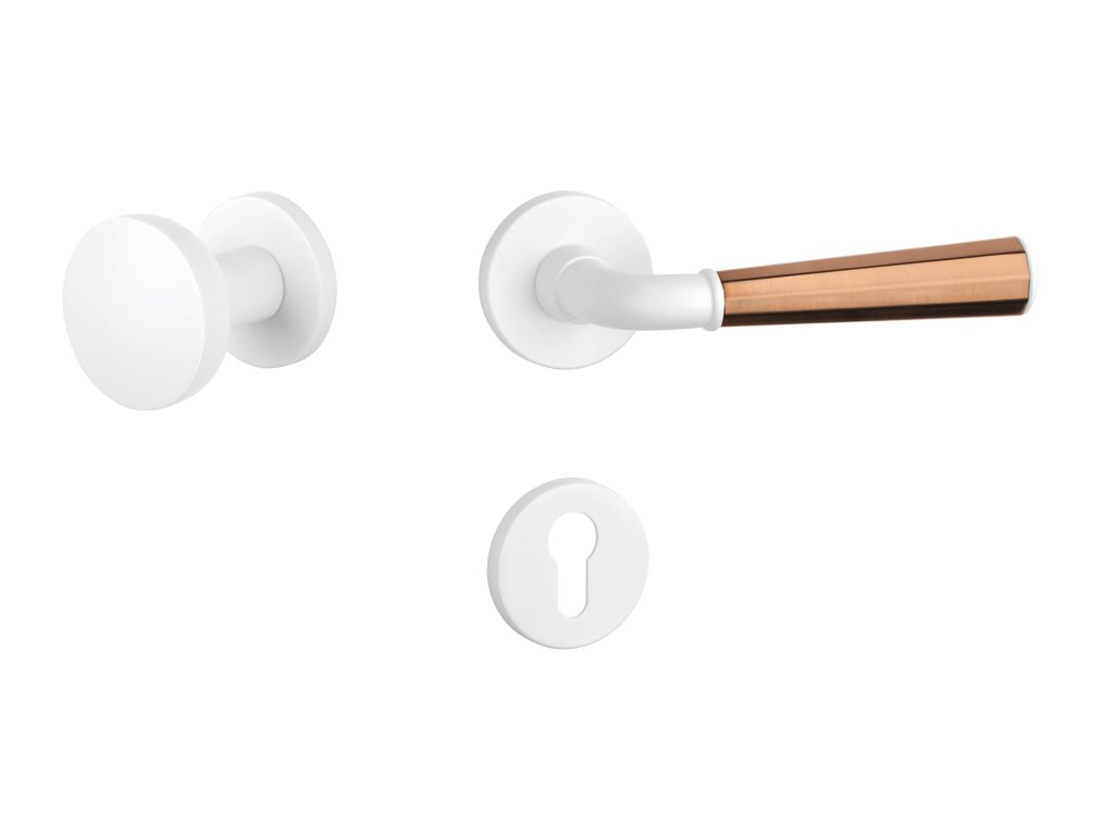 Mechanizmus kľučky obsahuje vratnú pružinu. Výstupky na rozete zabraňujú jej pretáčaniu a skrutky na preskrutkovanie cez celú šírku dverí zaručia pevnejšie a stabilnejšie uchytenie kovania.